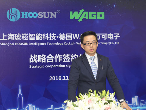 簽約儀式上,上海琥崧智能科技股份有限公司董事長李源林表示,制造業(yè)與互聯(lián)網(wǎng)融合發(fā)展,是全球新一輪科技革命和產(chǎn)業(yè)革命的核心特征,也是未來發(fā)展趨勢。不斷創(chuàng)新一直是琥崧堅持的戰(zhàn)略與目標(biāo),2016年琥崧智能布局全球精細化工市場,選擇與德國WAGO這樣優(yōu)秀的企業(yè)合作,將引進WAGO全球化的智能制造網(wǎng)絡(luò)技術(shù),為精細化工企業(yè)提升工廠自動化水平、產(chǎn)品質(zhì)量水平及生產(chǎn)監(jiān)控物聯(lián)網(wǎng)水平,以最新科技為精細化工企業(yè)筑就通向柔性、靈活的“未來工廠”之路,助力實現(xiàn)“中國制造2025”規(guī)劃目標(biāo)。