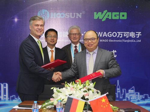 11月28日,琥崧智能與德國WAGO公司在上海舉行戰(zhàn)略合作簽約儀式,雙方將在精細化工行業(yè)自動化和數(shù)字化研究以及智能工廠等方面建立戰(zhàn)略合作關(guān)系。WAGO公司CEO Mr. Palm Volker(彭夫柯)、CSO Mr. Leo Liu(劉楠),聯(lián)合前ABB集團副總裁、琥崧智能首席顧問Mr. Karl Scholz(卡爾·舒爾茨),上海琥崧智能董事長李源林等出席了簽約儀式。琥崧智能與德國WAGO公司共同表示,此次戰(zhàn)略合作將建立雙方的戰(zhàn)略合作伙伴關(guān)系,促成雙方全集成自動化解決方案及數(shù)字化制造的資源共享和優(yōu)勢互補、實現(xiàn)合作共贏。