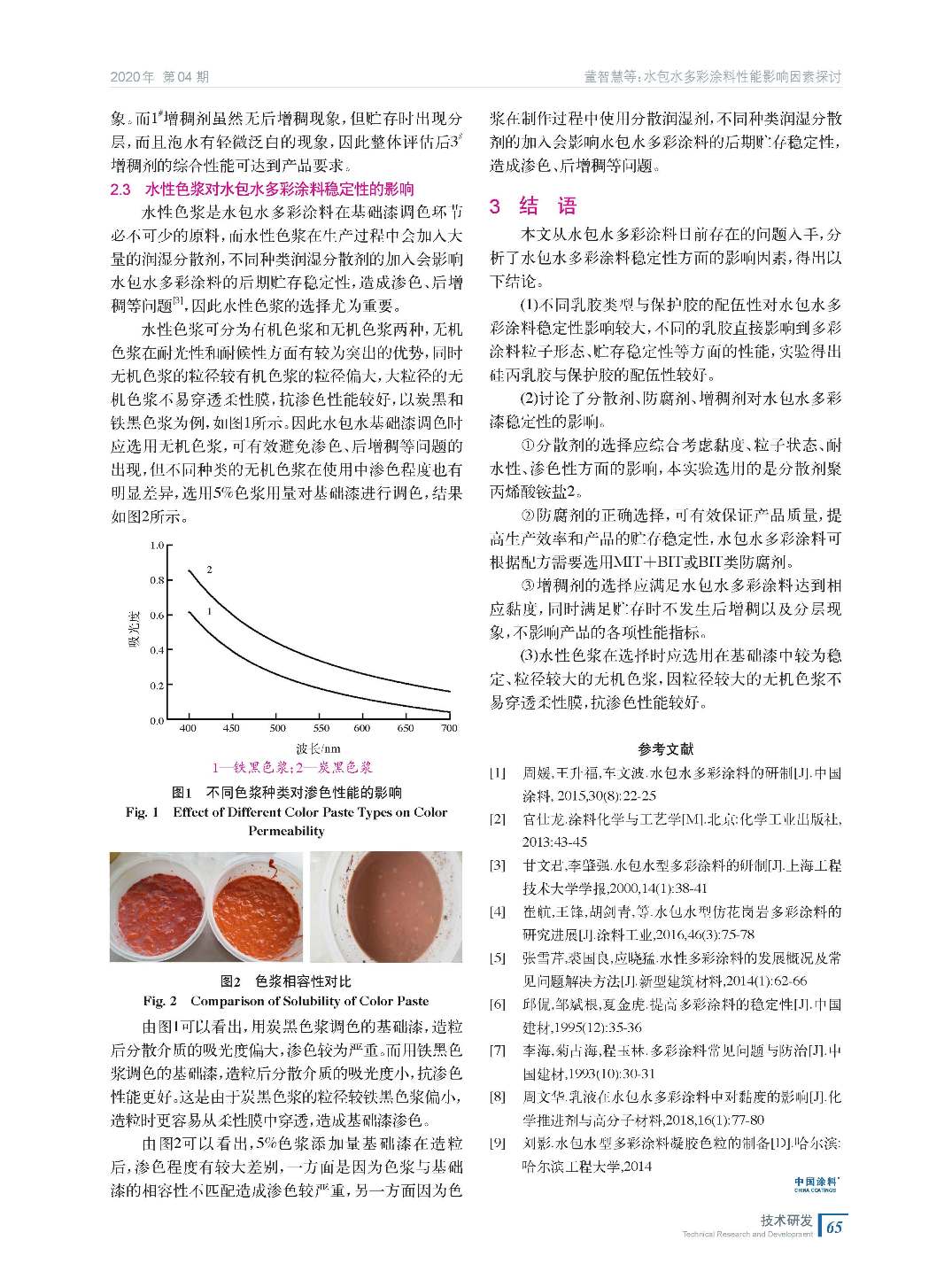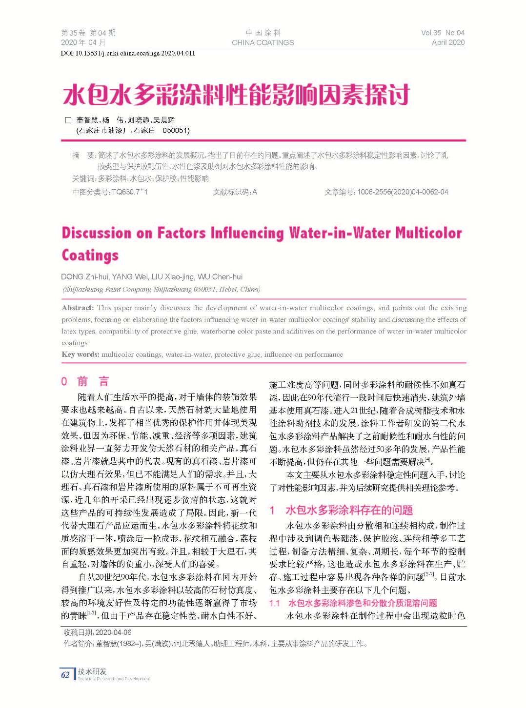 摘要:簡(jiǎn)述了水包水多彩涂料的發(fā)展概況,指出了目前存在的問題。重點(diǎn)闡述了水包水多彩涂料穩(wěn)定性影響因素,討論了乳膠類型與保護(hù)膠配伍性、水性色漿及助劑對(duì)水包水多彩涂料性能的影響。