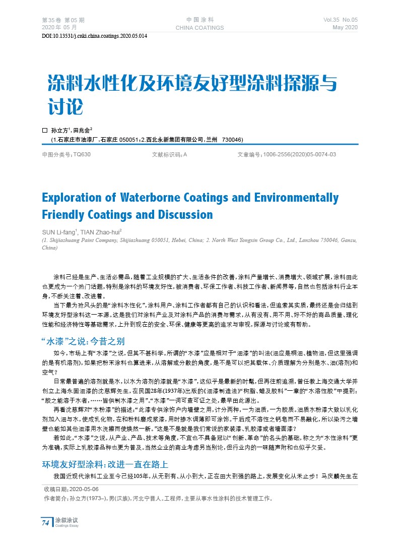 本文系作者@孫立方,田兆會 授權中國涂料網發表,并經中國涂料網編輯,未經允許不得轉載,如需轉載請聯系chinacoatingnet@vip.163.com