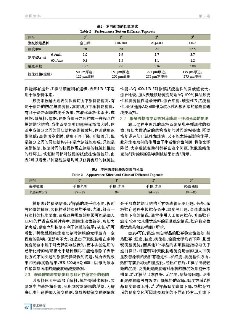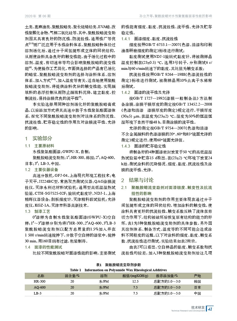 聚酰胺蠟對水性聚氨酯面漆性能的影響