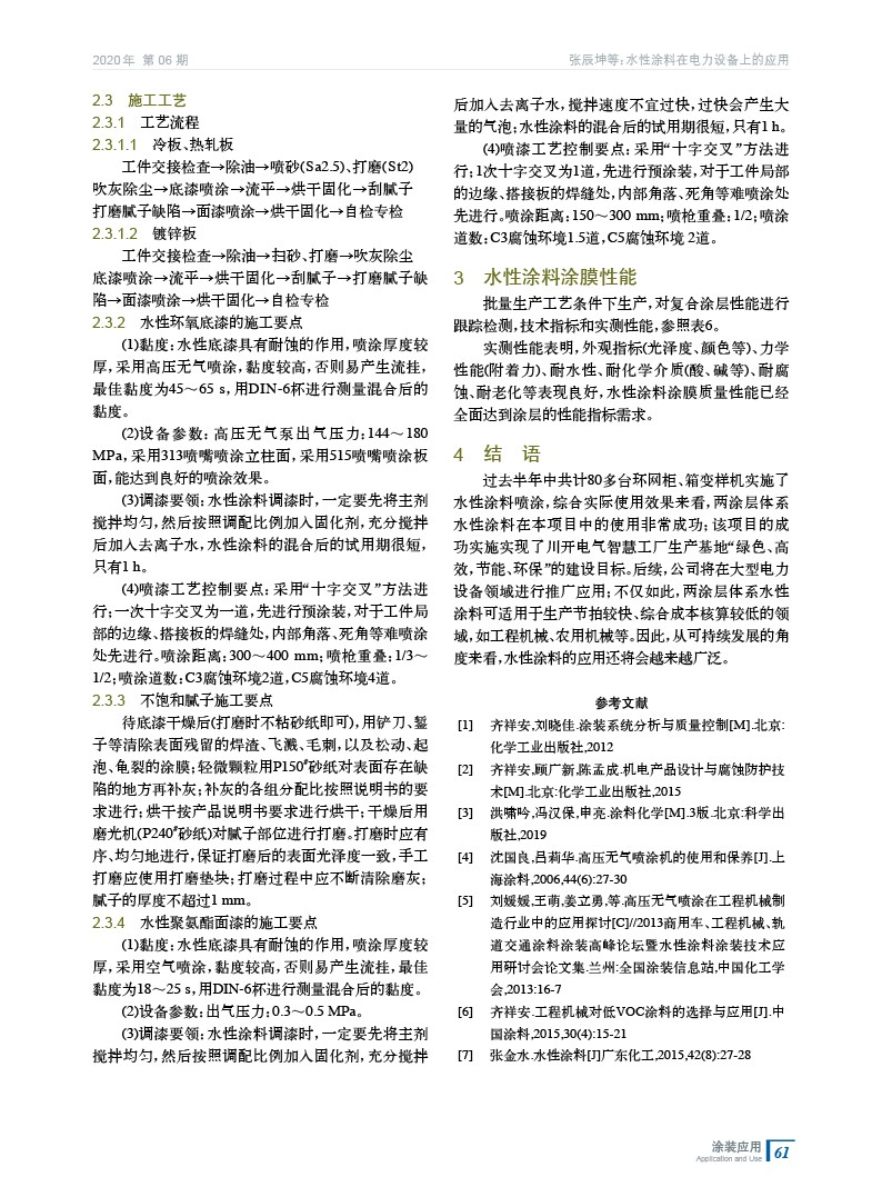 基于企業自身實際需求,就水性涂料的特性、涂層設計、應用及設備等進行了闡述,實驗結果表明,水性涂料涂膜質量性能已經全面達到涂層的性能指標需求。