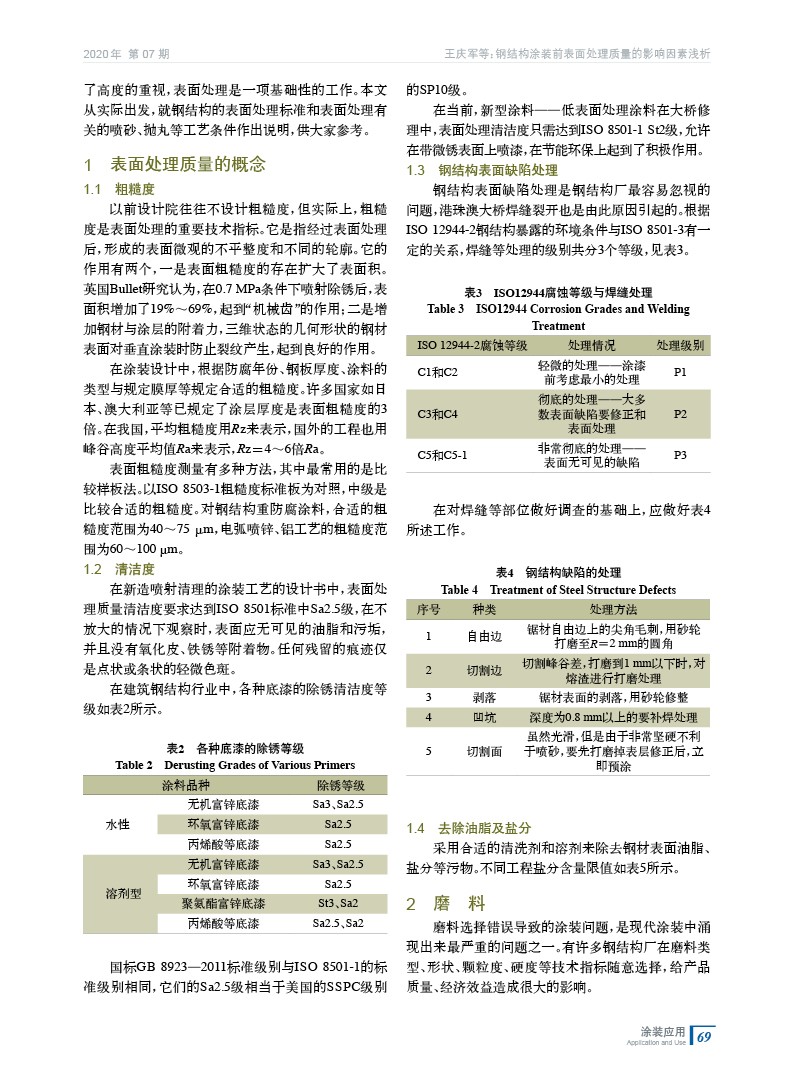 鋼結構涂裝前表面處理對防腐的影響最大,從粗糙度、鋼結構表面缺陷處理、磨料的應用、涂裝工藝要求等方面總結了鋼結構的處理標準及工藝。