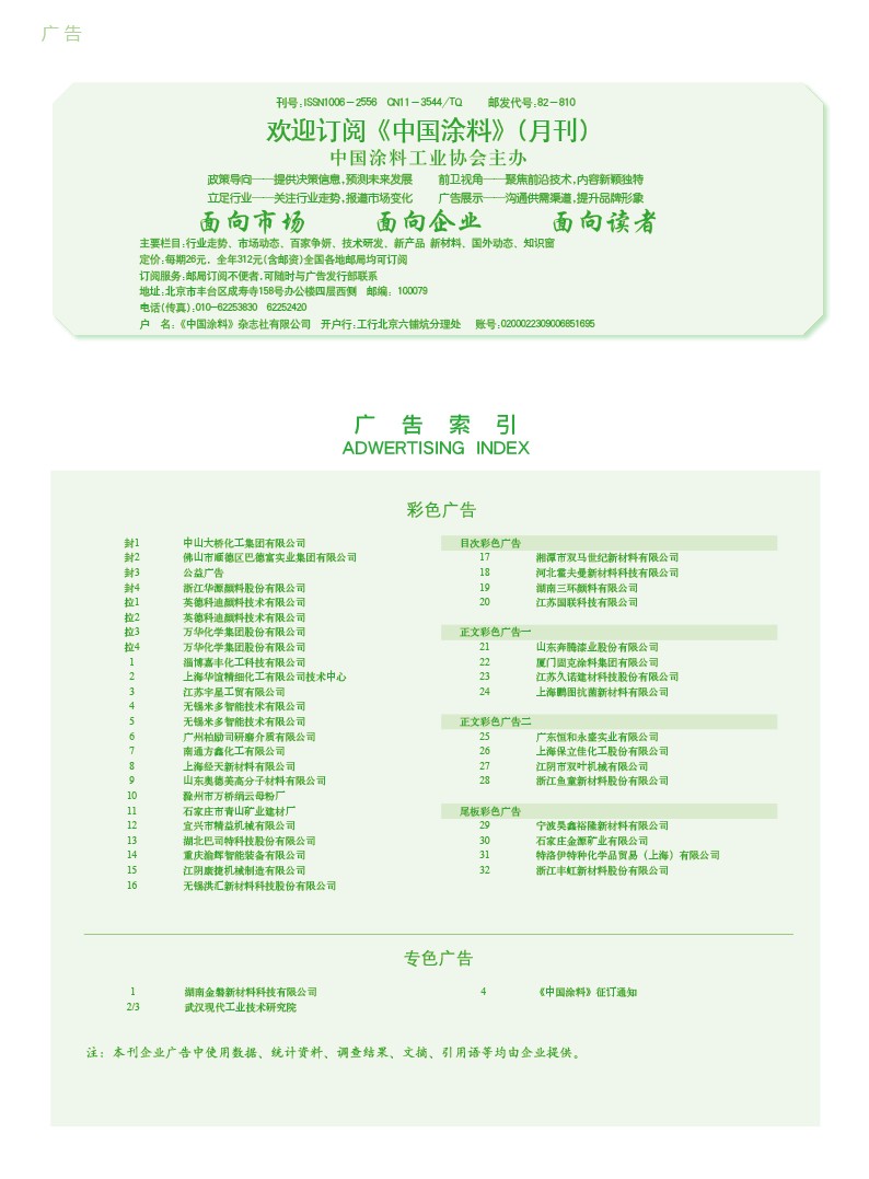 湖南金磐、武漢現代工業技術研究院、《中國涂料》征訂通知