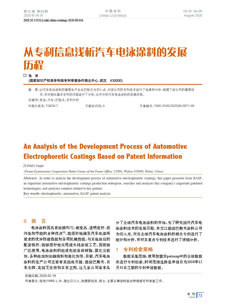 從專利信息淺析汽車電泳涂料的發(fā)展歷程
