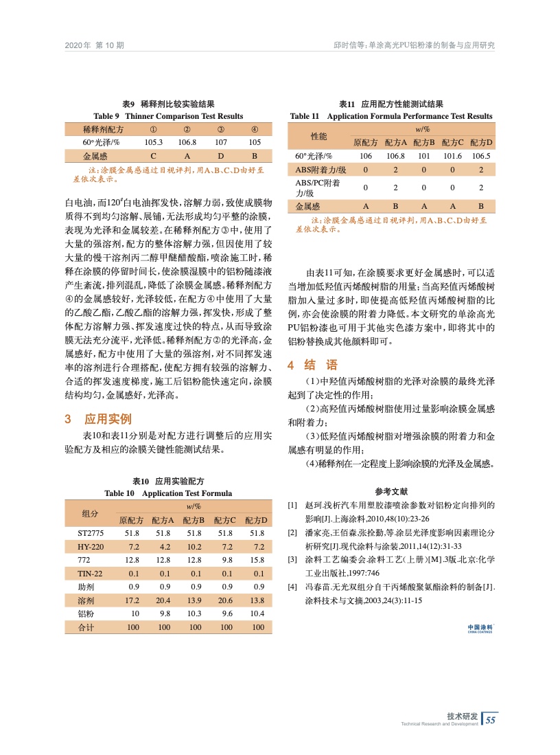 單涂高光PU鋁粉漆的制備與應(yīng)用研究