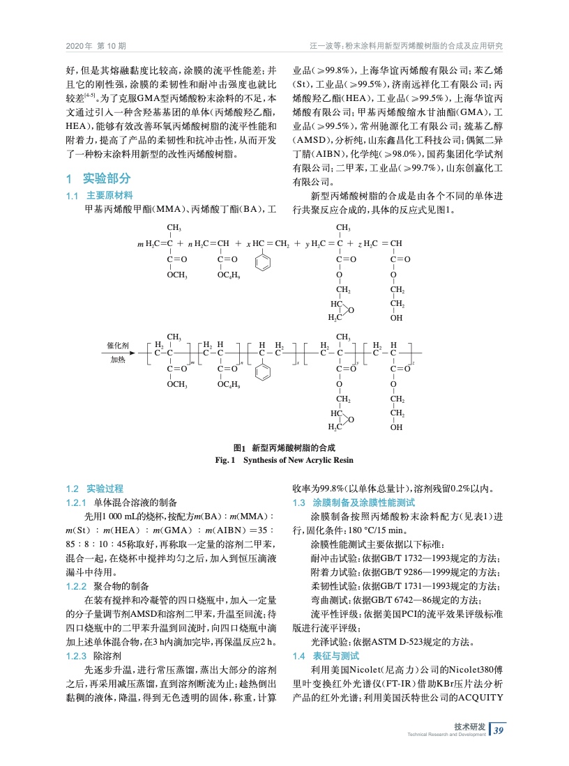 粉末涂料用新型丙烯酸樹脂的合成及應(yīng)用研究