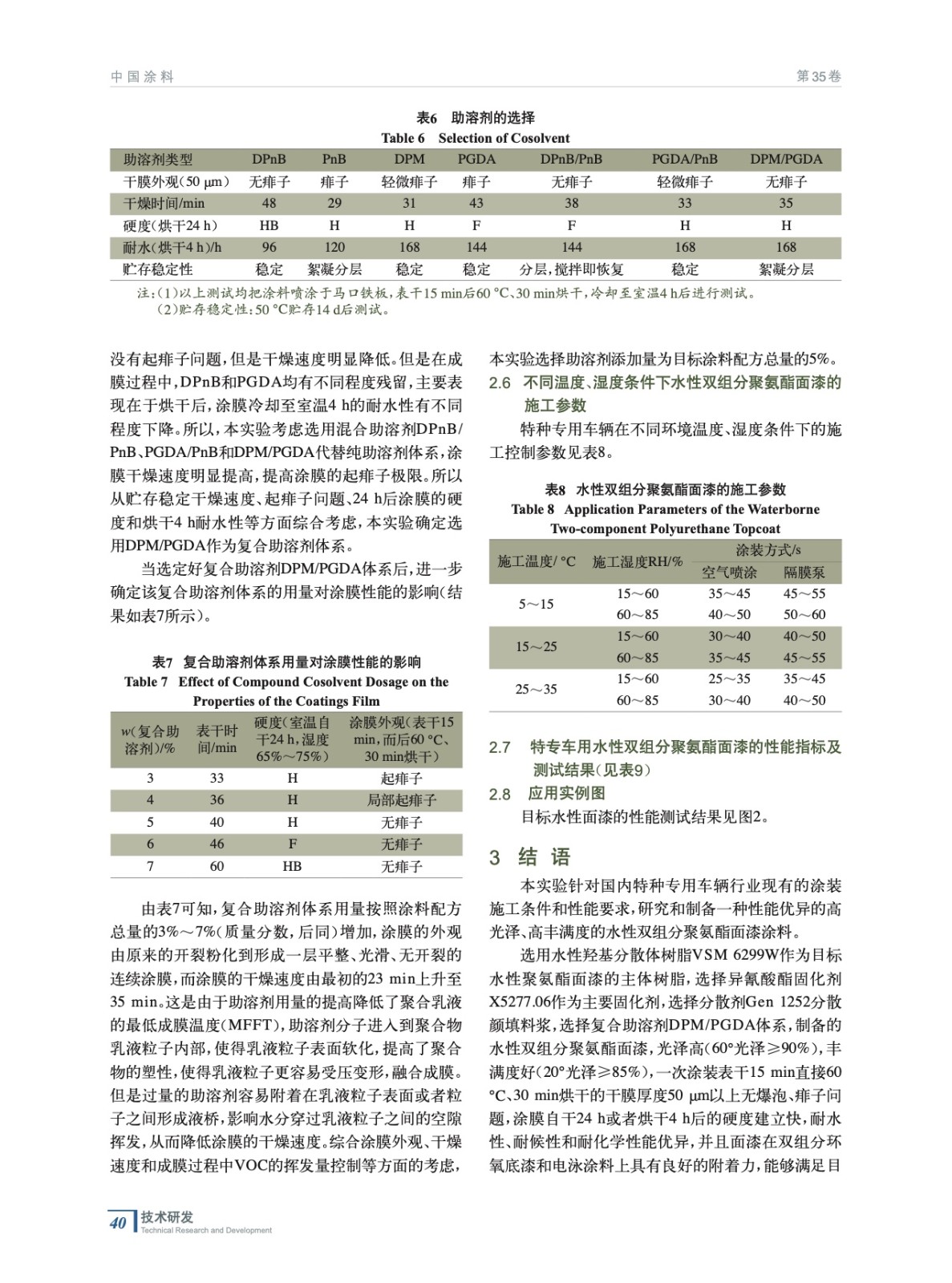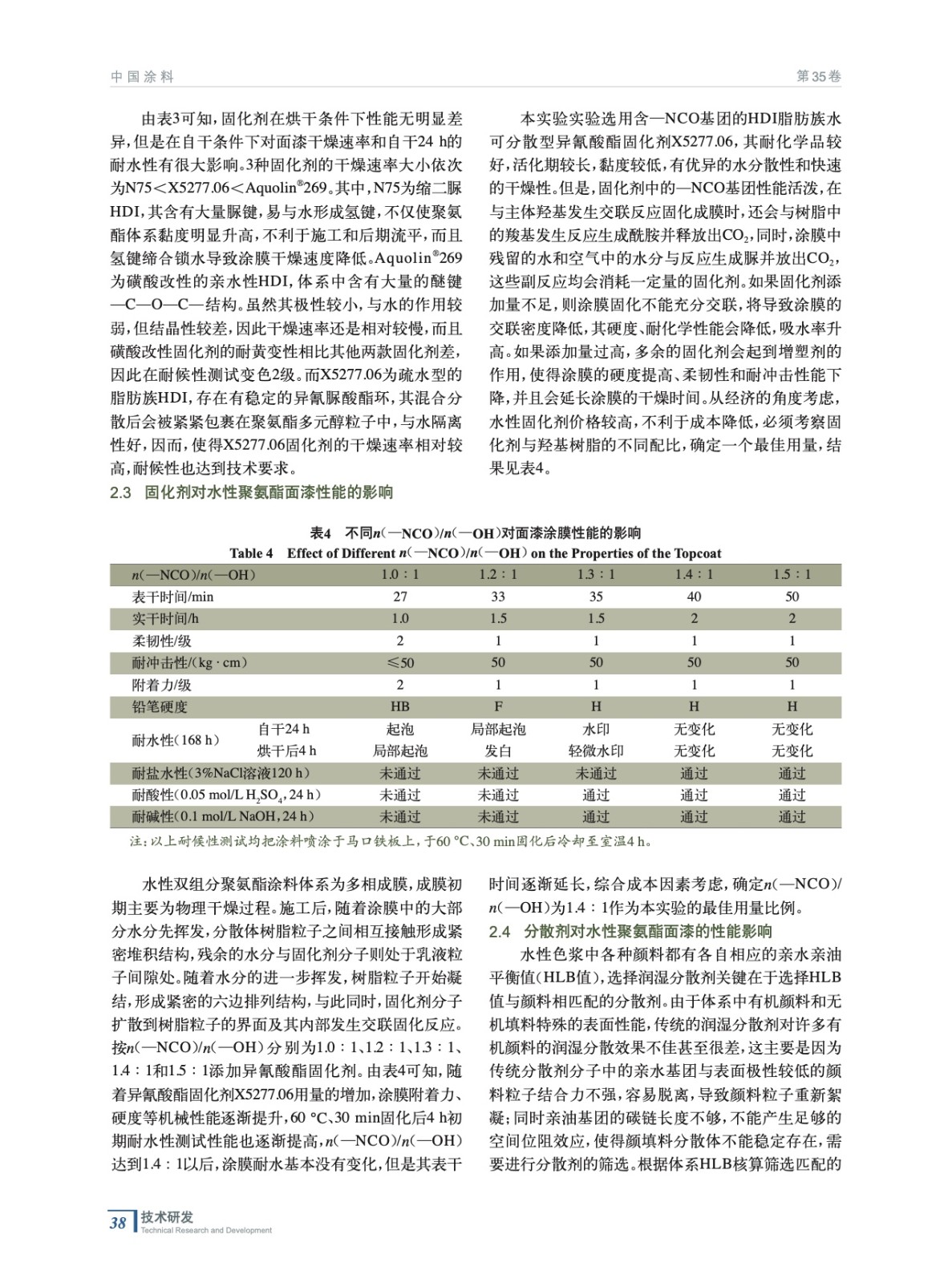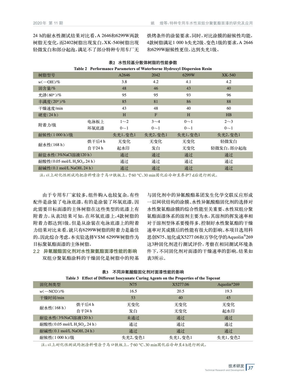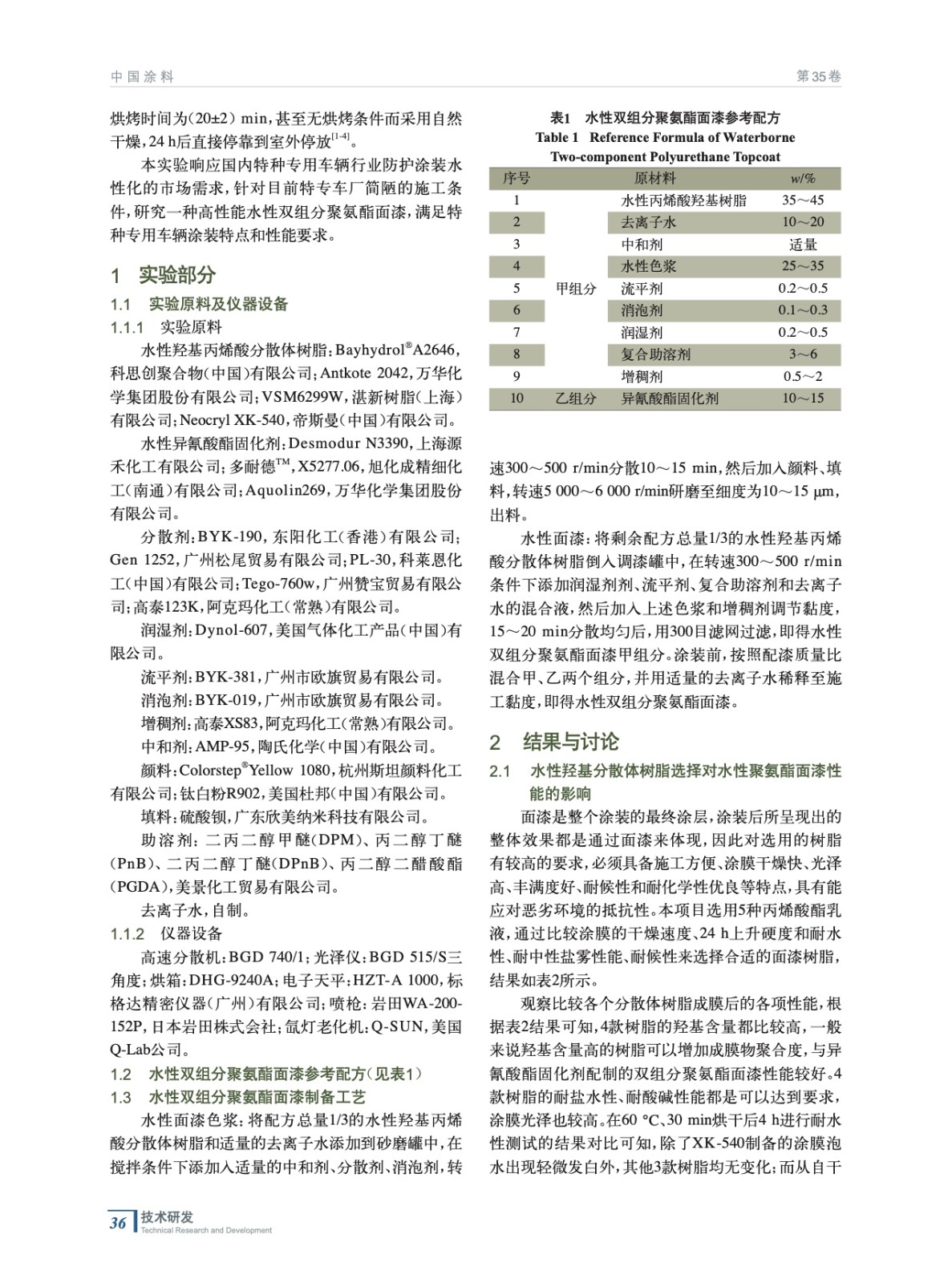 特種專用車水性雙組分聚氨酯面漆的研究及應用