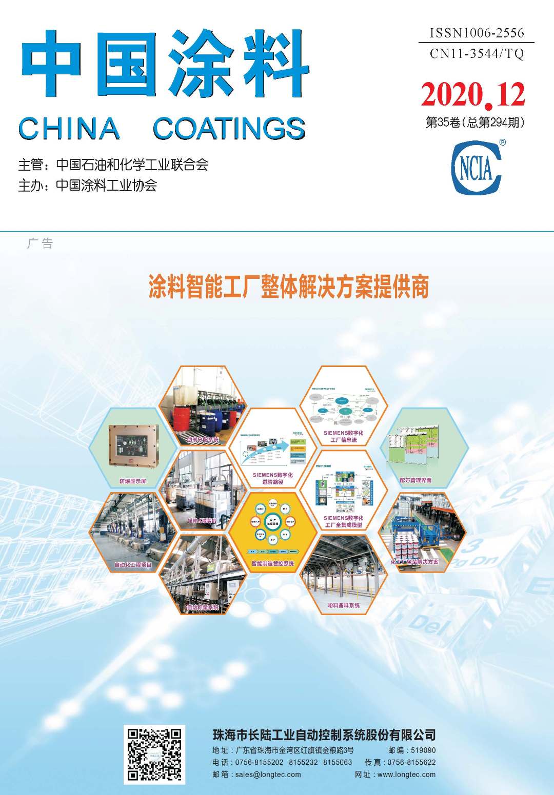 封1:珠海市長陸工業自動控制系統股份有限公司;封2:上海華誼精細化工有限公司技術中心;封3:公益廣告;封4:贏創特種化學(上海)有限公司