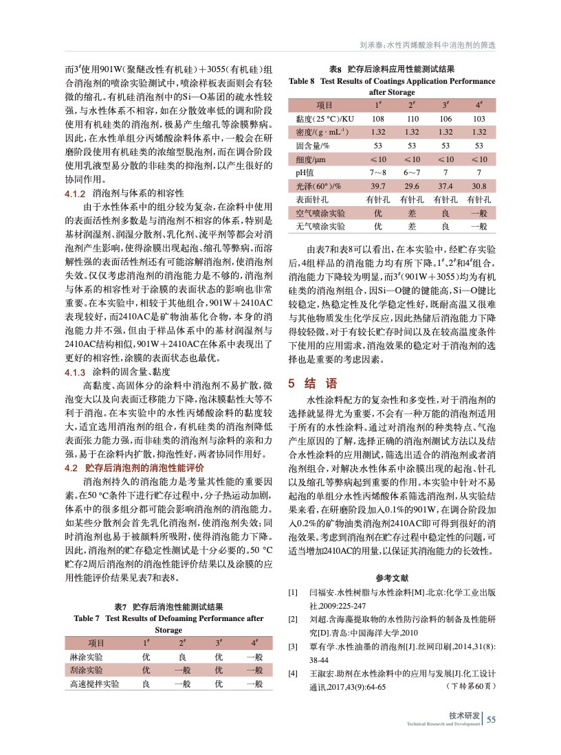 水性丙烯酸涂料中消泡劑的篩選