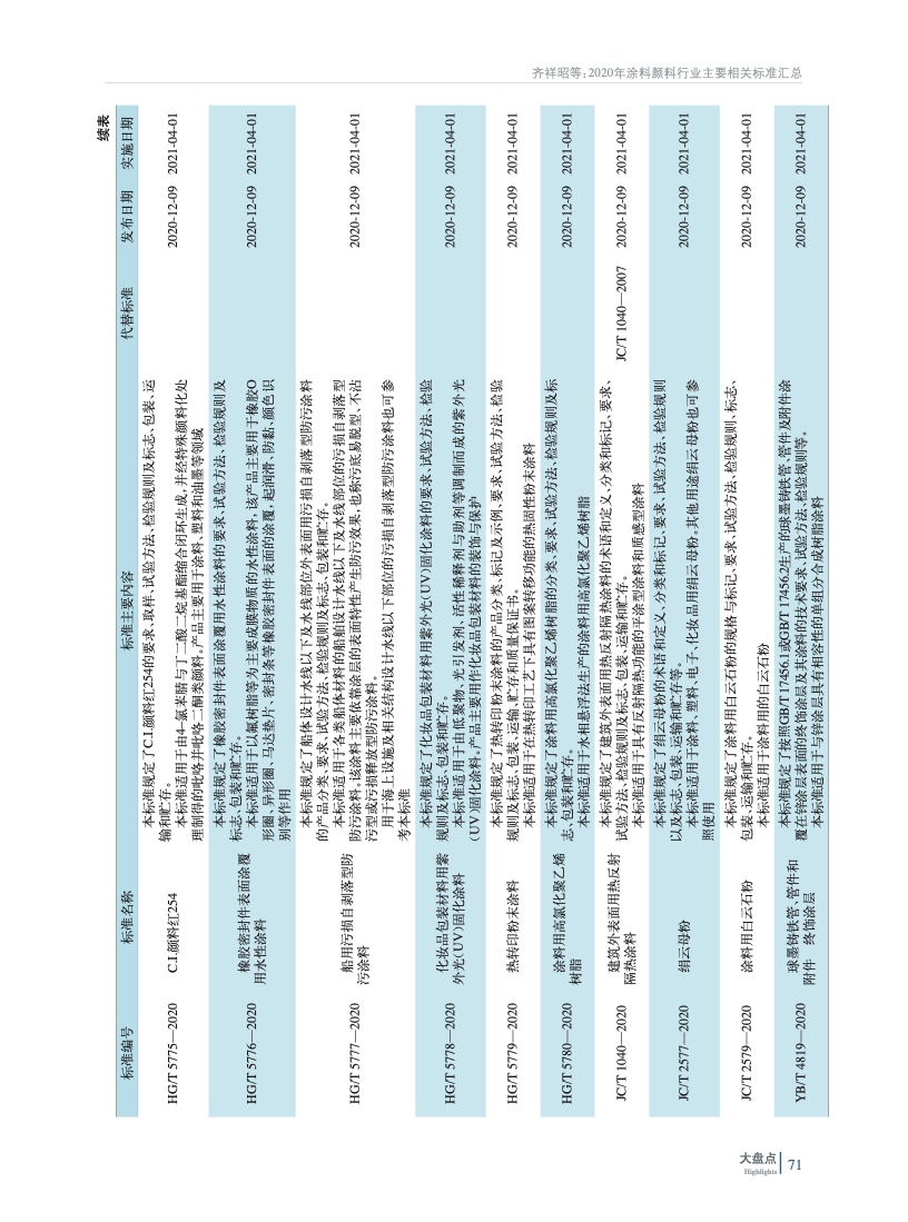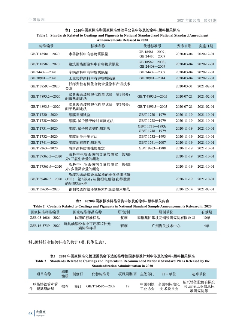 2020年涂料、顏料行業主要相關標準匯總