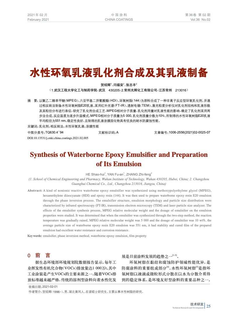 本文系作者@賀紹輝,閆福安,張志豐 授權中國涂料網發表,并經中國涂料網編輯,未經允許不得轉載,如需轉載請聯系chinacoatingnet@vip.163.com