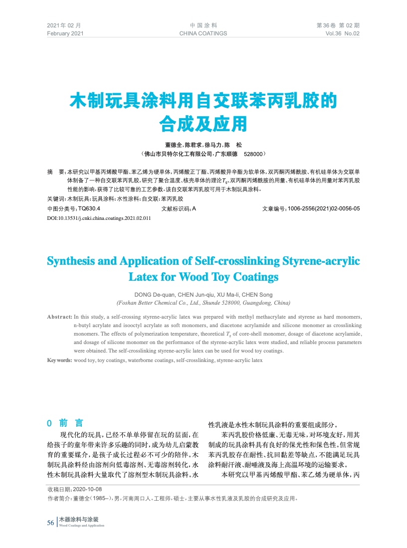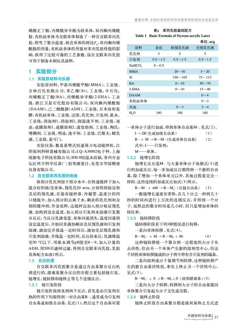 木制玩具涂料用自交聯苯丙乳膠的合成及應用