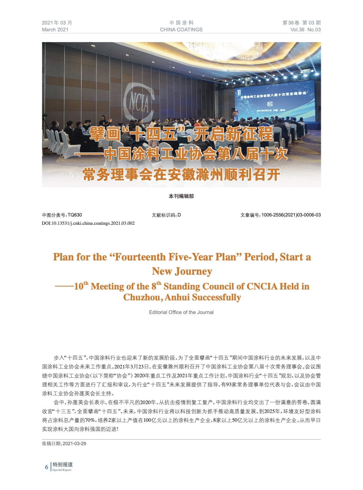 擘畫“十四五”,開啟新征程——中國涂料工業協會第八屆十次常務理事會在安徽滁州順利召開