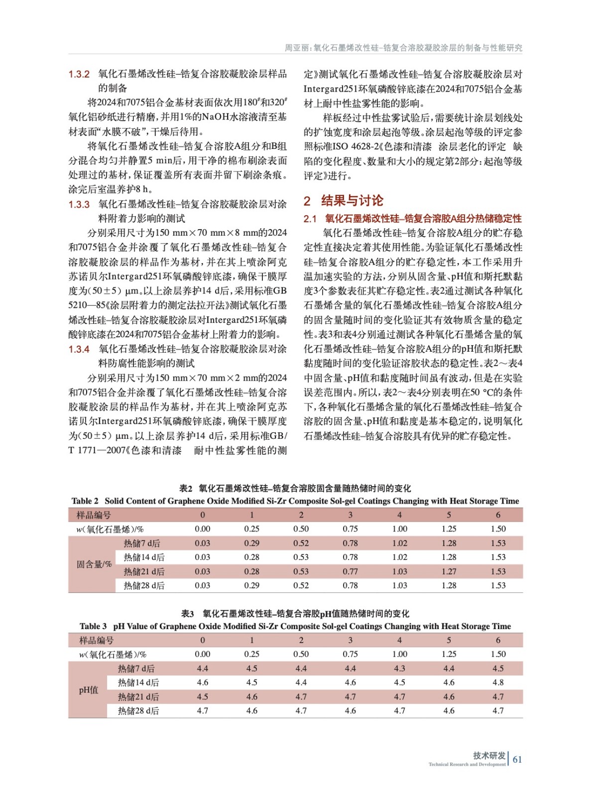 氧化石墨烯改性硅-鋯復(fù)合溶膠凝膠涂層的制備與性能研究
