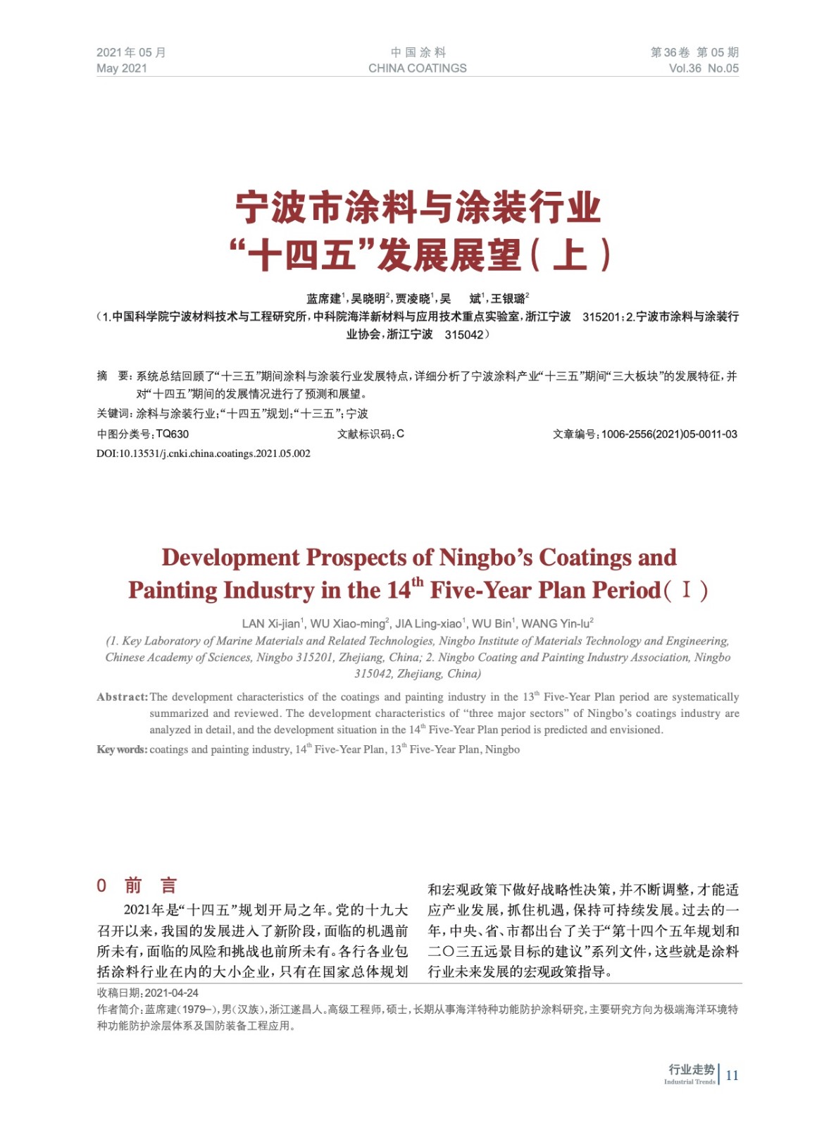 系統總結回顧了“十三五”期間涂料與涂裝行業發展特點,詳細分析了寧波涂料產業“十三五”期間“三大板塊”的發展特征,并對“十四五”期間的發展情況進行了預測和展望。
