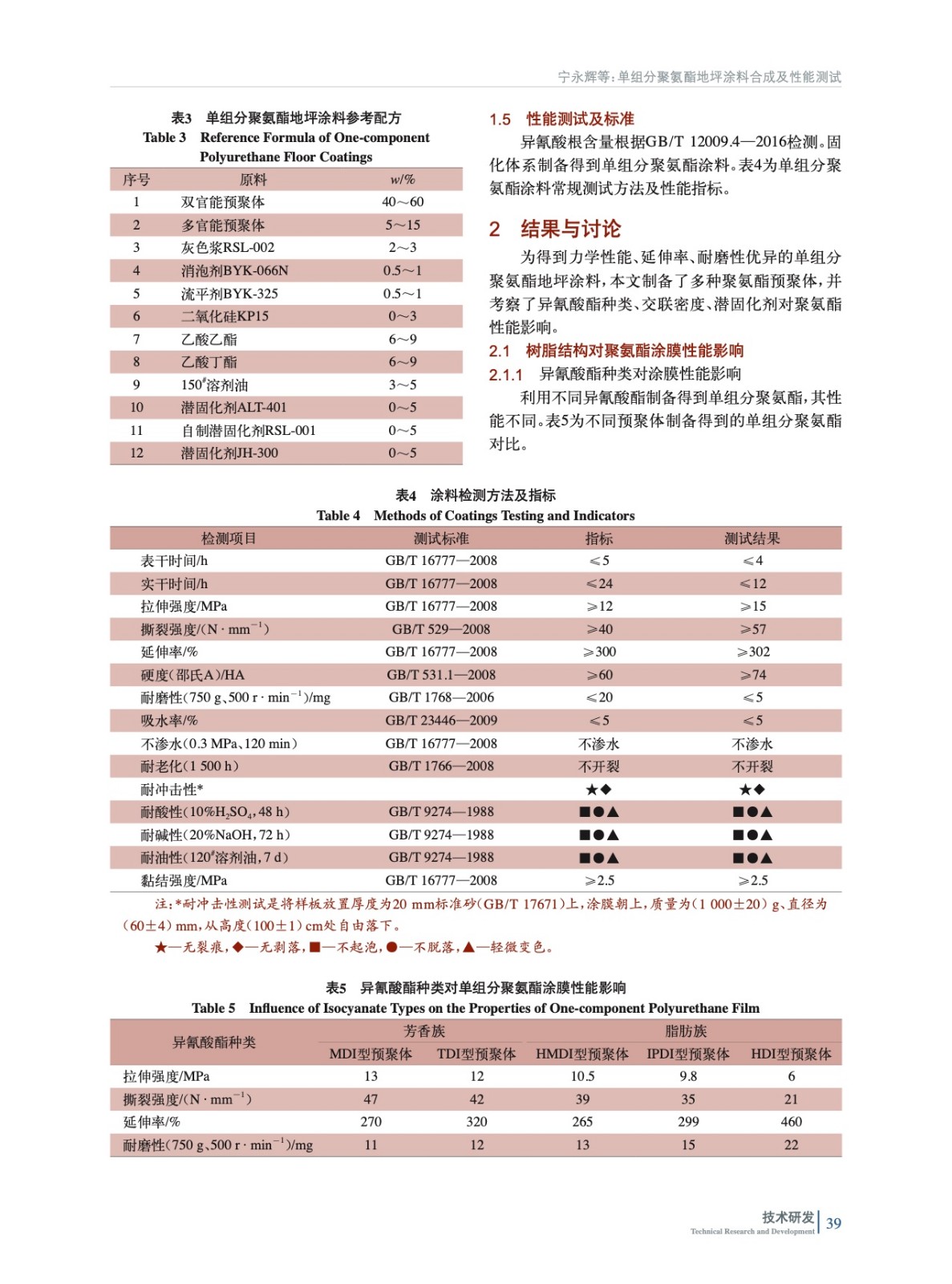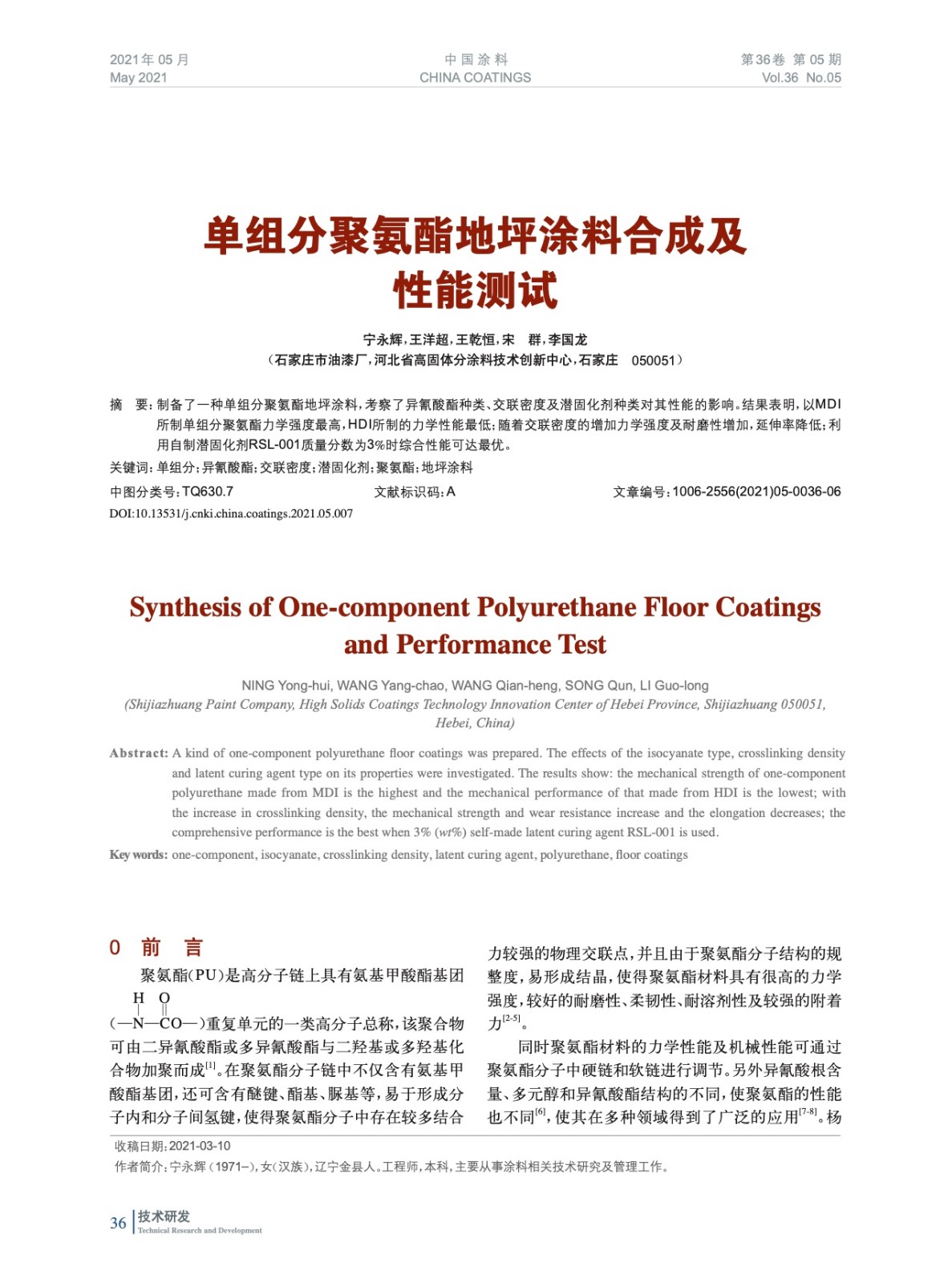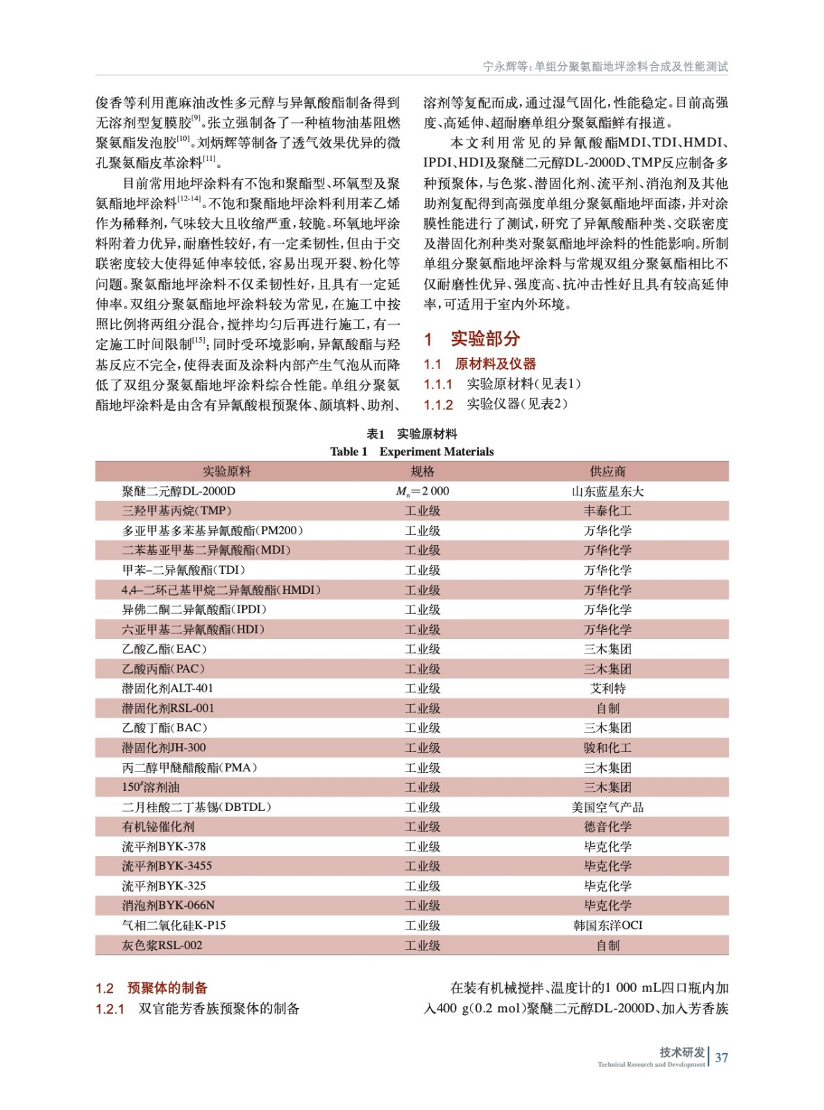 單組分聚氨酯地坪涂料合成及性能測(cè)試