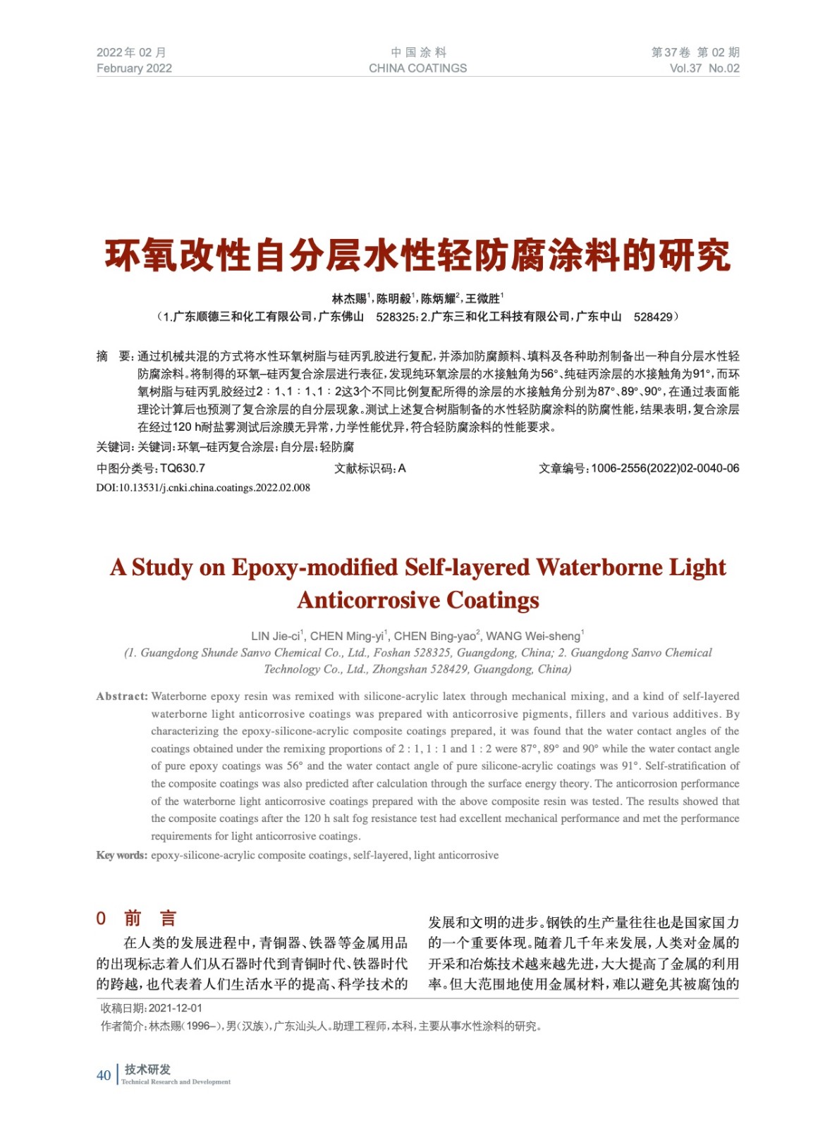 本文系作者@林杰賜,陳明毅,陳炳耀,王微勝 授權中國涂料網發表,并經中國涂料網編輯,未經允許不得轉載,如需轉載請聯系chinacoatingnet@vip.163.com