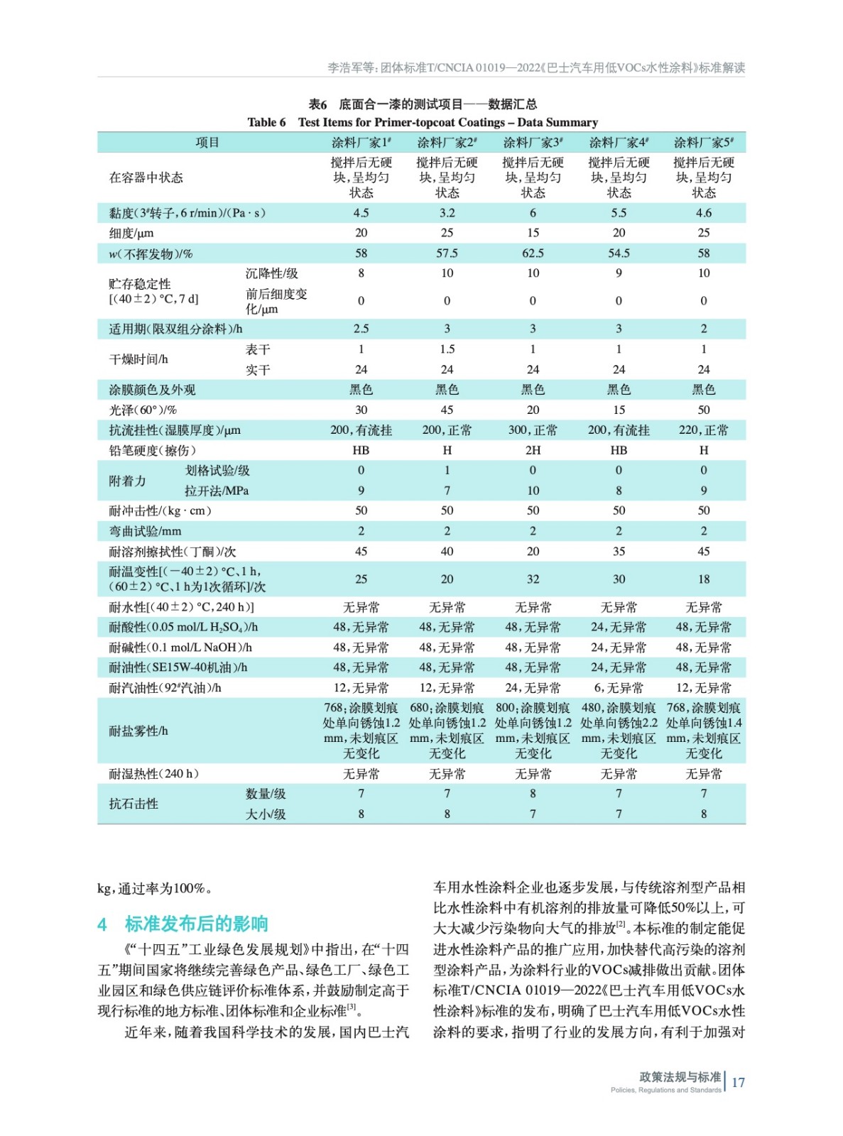 團體標準T/CNCIA 01019—2022《巴士汽車用低VOCs水性涂料》 標準解讀