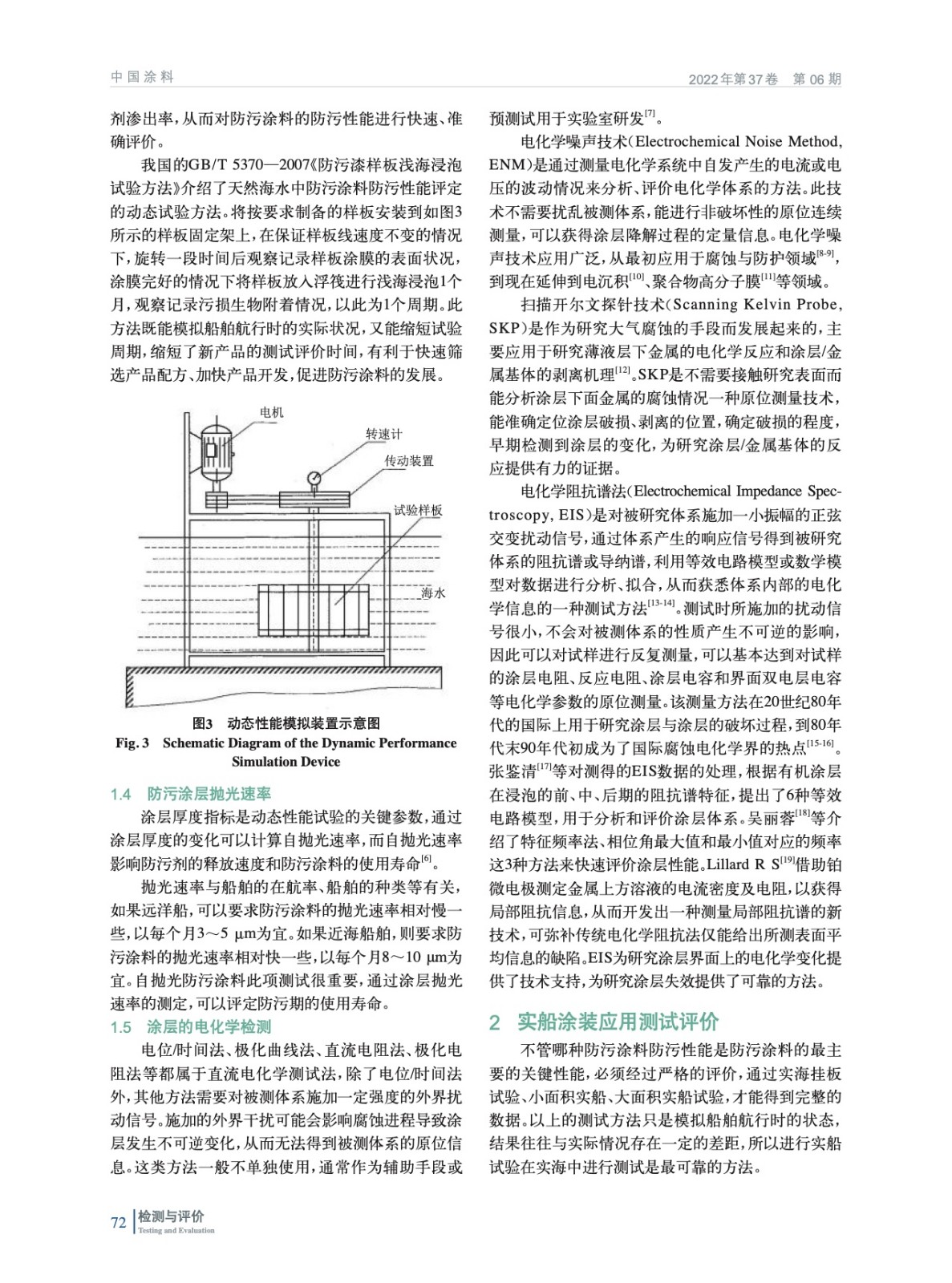 從防污劑釋放率、淺海掛板、動態模擬實驗、防污涂層拋光速率、涂層的電化學性能測試5個方面介紹了海洋防污涂料開發過程中實驗室常用的幾種防污性能加速評價方法手段,并說明了實船涂裝應用評價對防污涂料研發的重要性,展望了防污涂料的發展前景。