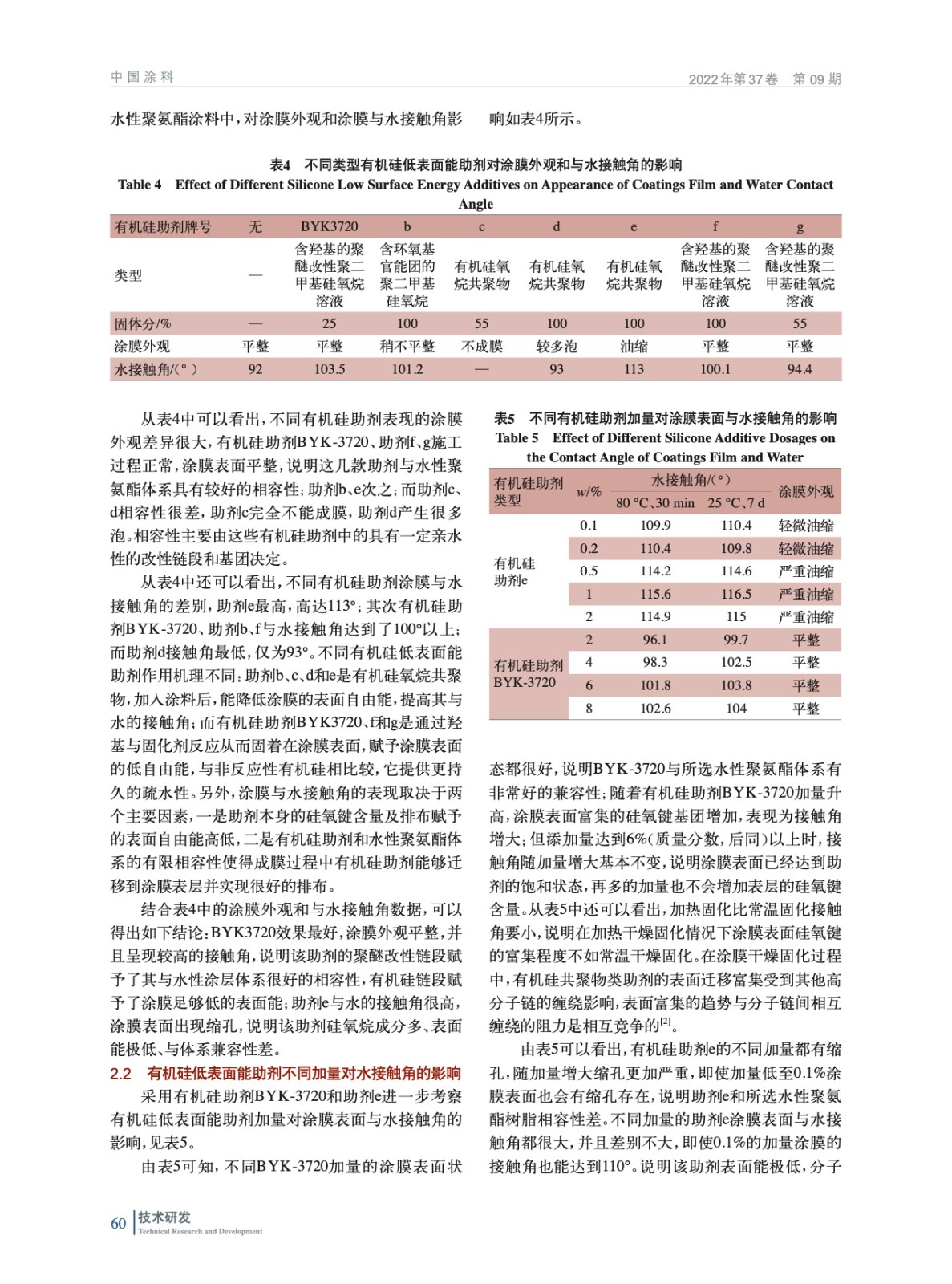 有機(jī)硅低表面能助劑對(duì)水性聚氨酯涂膜表面與水接觸角的影響
