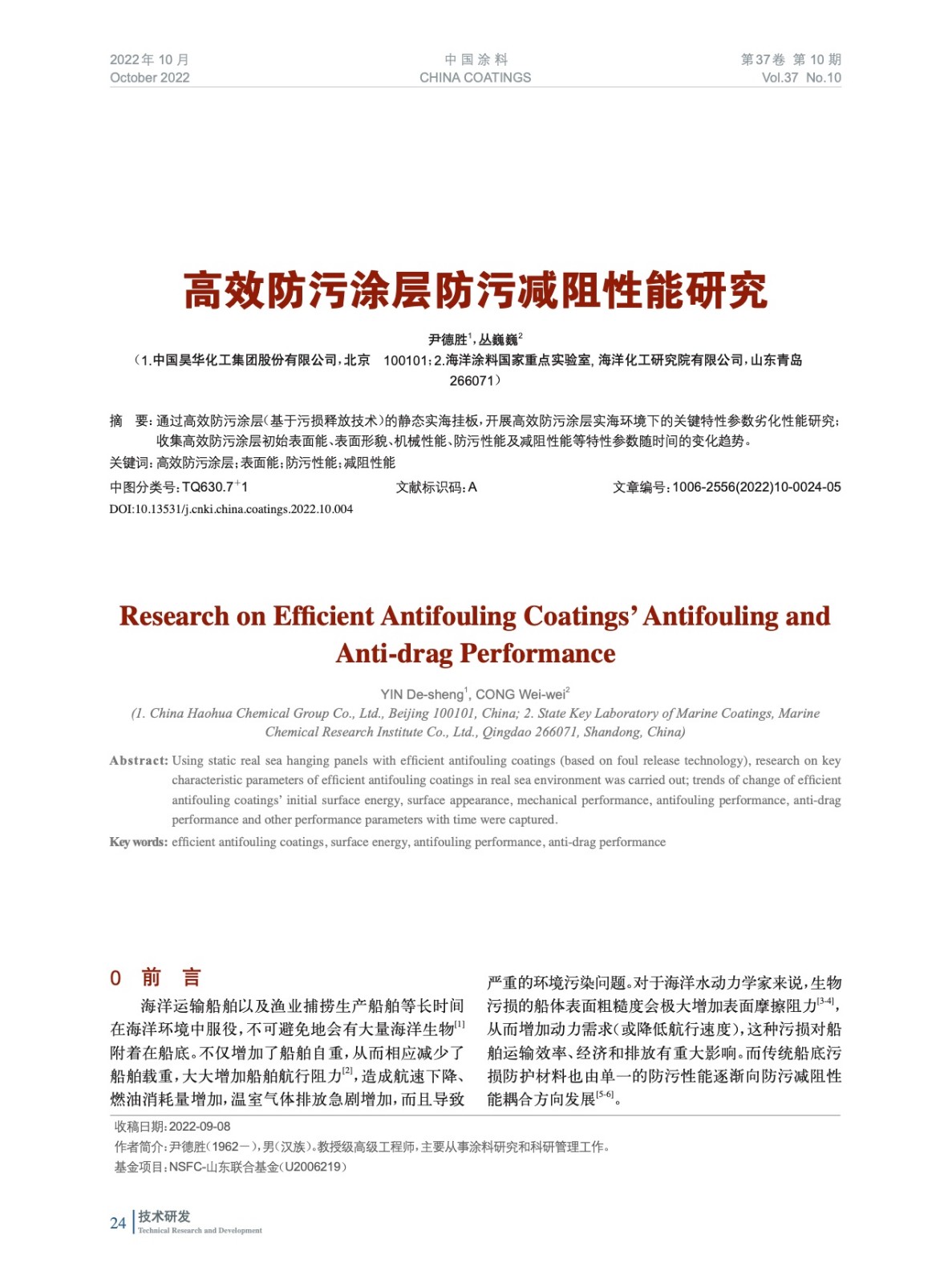 摘要:通過高效防污涂層(基于污損釋放技術(shù))的靜態(tài)實海掛板,開展高效防污涂層實海環(huán)境下的關(guān)鍵特性參數(shù)劣化性能研究;收集高效防污涂層初始表面能、表面形貌、機械性能、防污性能及減阻性能等特性參數(shù)隨時間的變化趨勢。