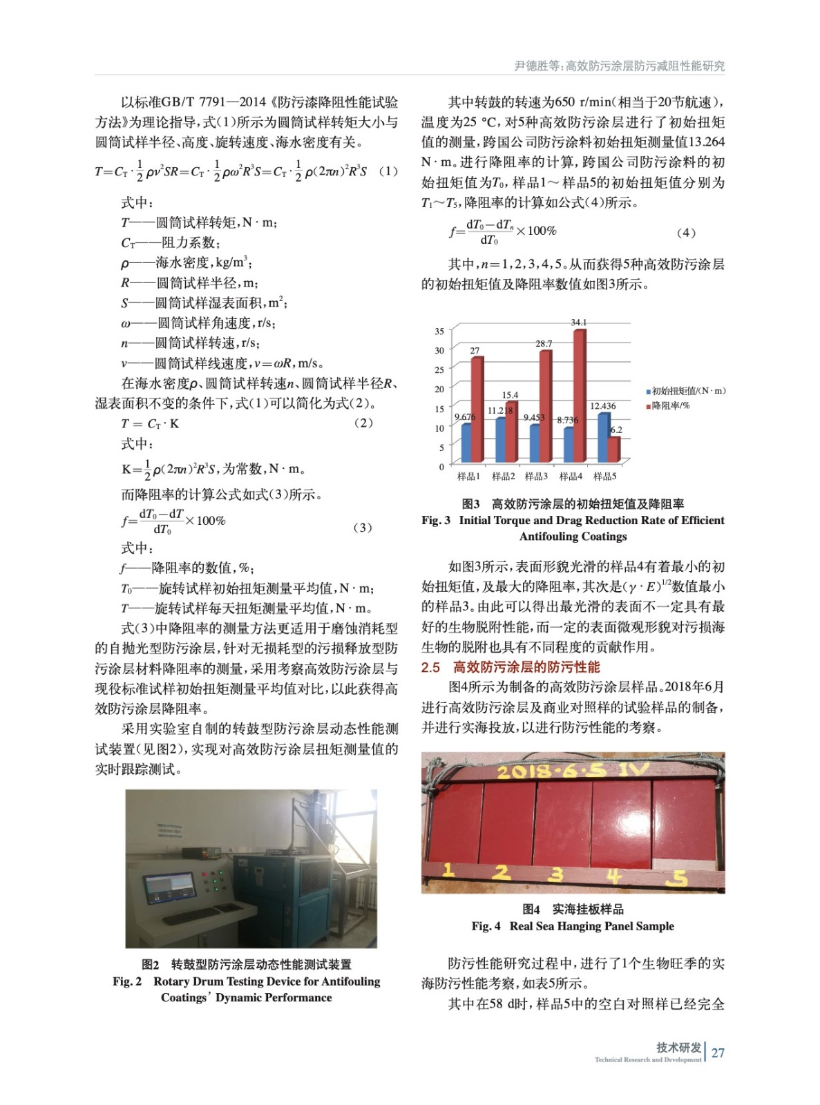高效防污涂層防污減阻性能研究