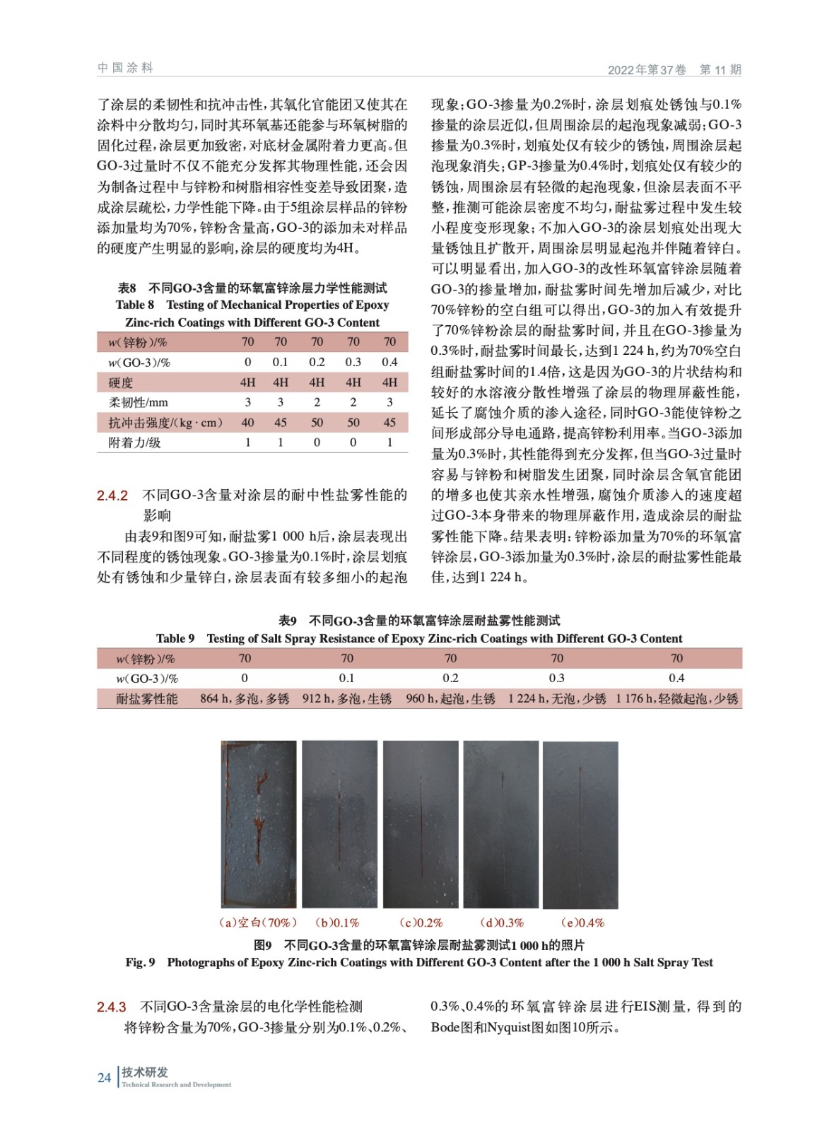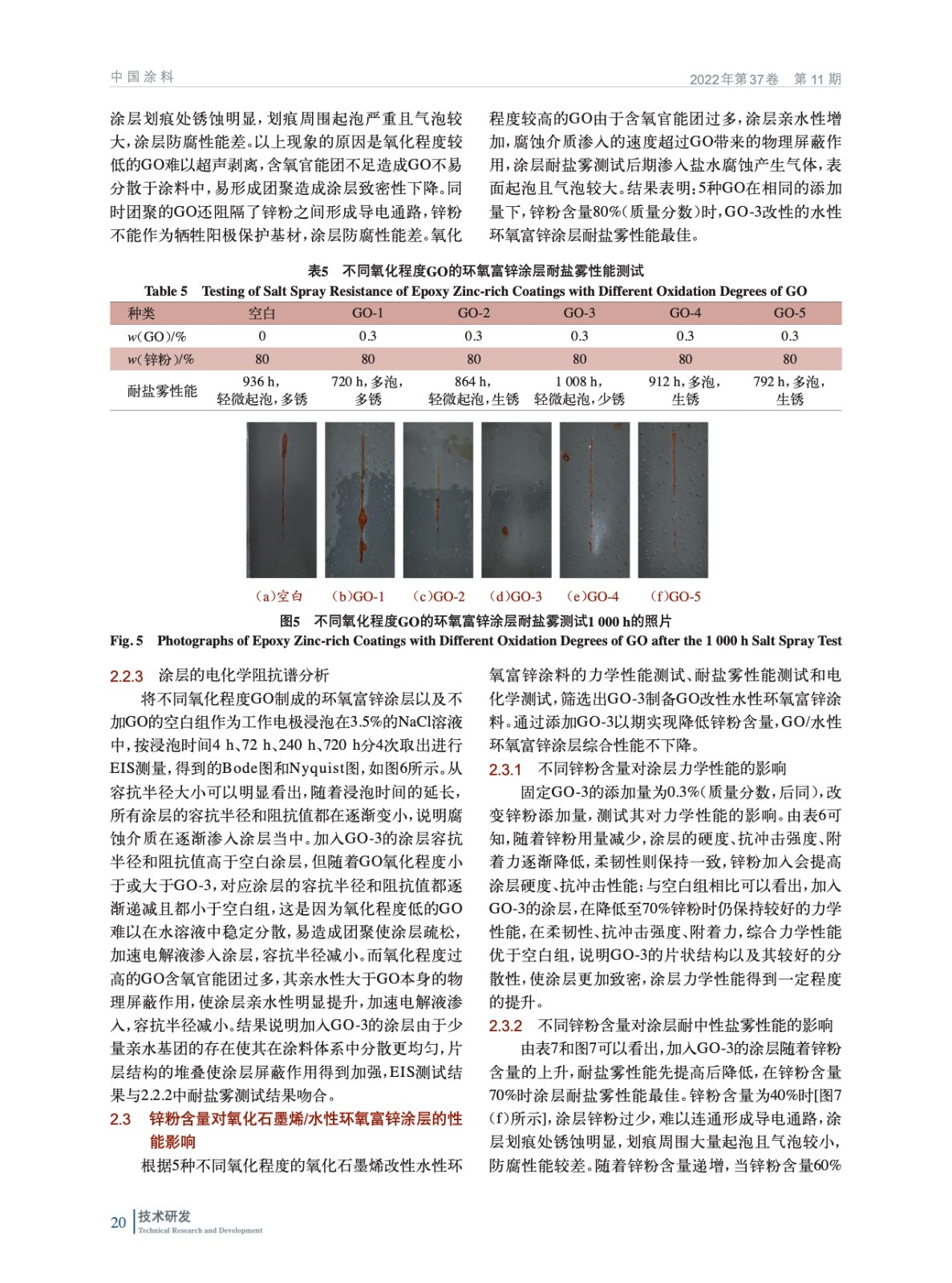 氧化石墨烯(GO)/水性環(huán)氧富鋅涂料的制備及性能研究