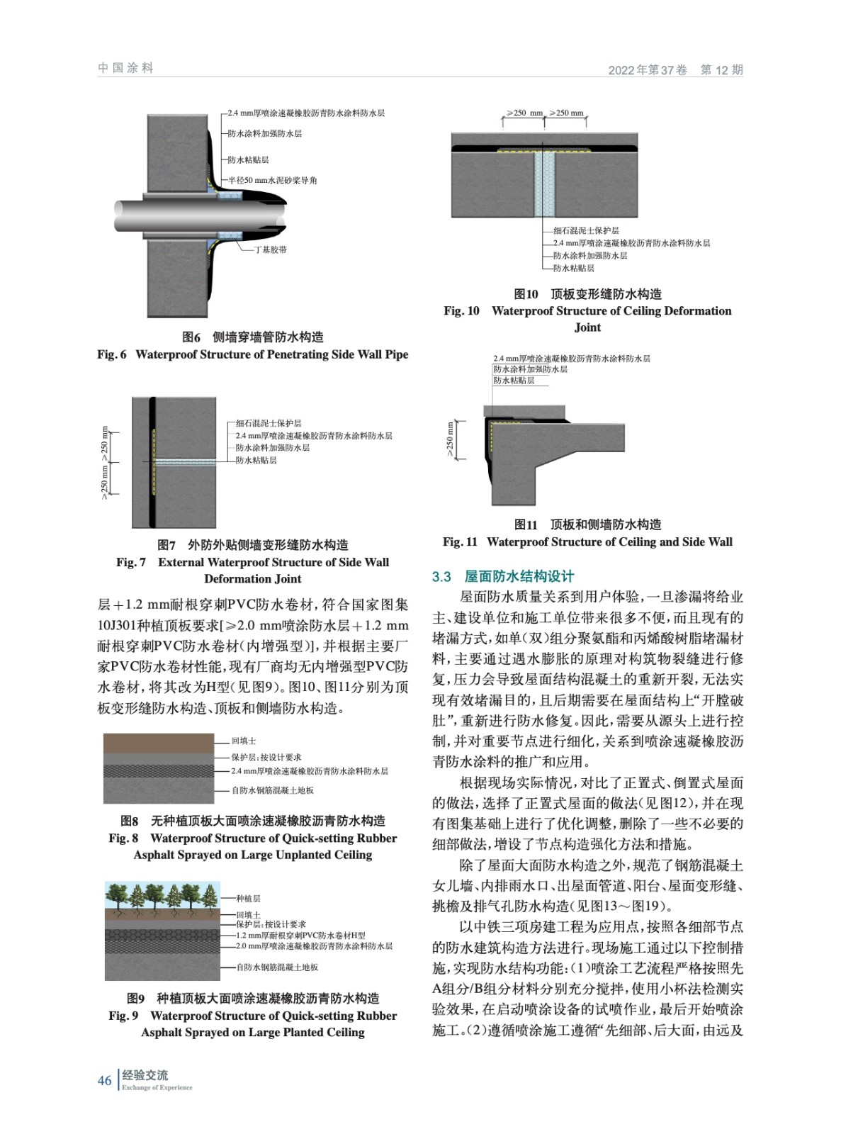 摘要:為進一步規范噴涂速凝橡膠瀝青防水涂料的設計技術及方法,以房建工程為基礎,針對不同的位置和結構形式,提出了地下室底板、側墻、頂板和屋面詳細防水構造做法。工程實踐表明,地下室和屋面防水工程未出現滲漏水現象,保障了構筑物的質量和安全。該方法可為類似工程提供借鑒意義,具有良好的經濟效益和推廣價值。