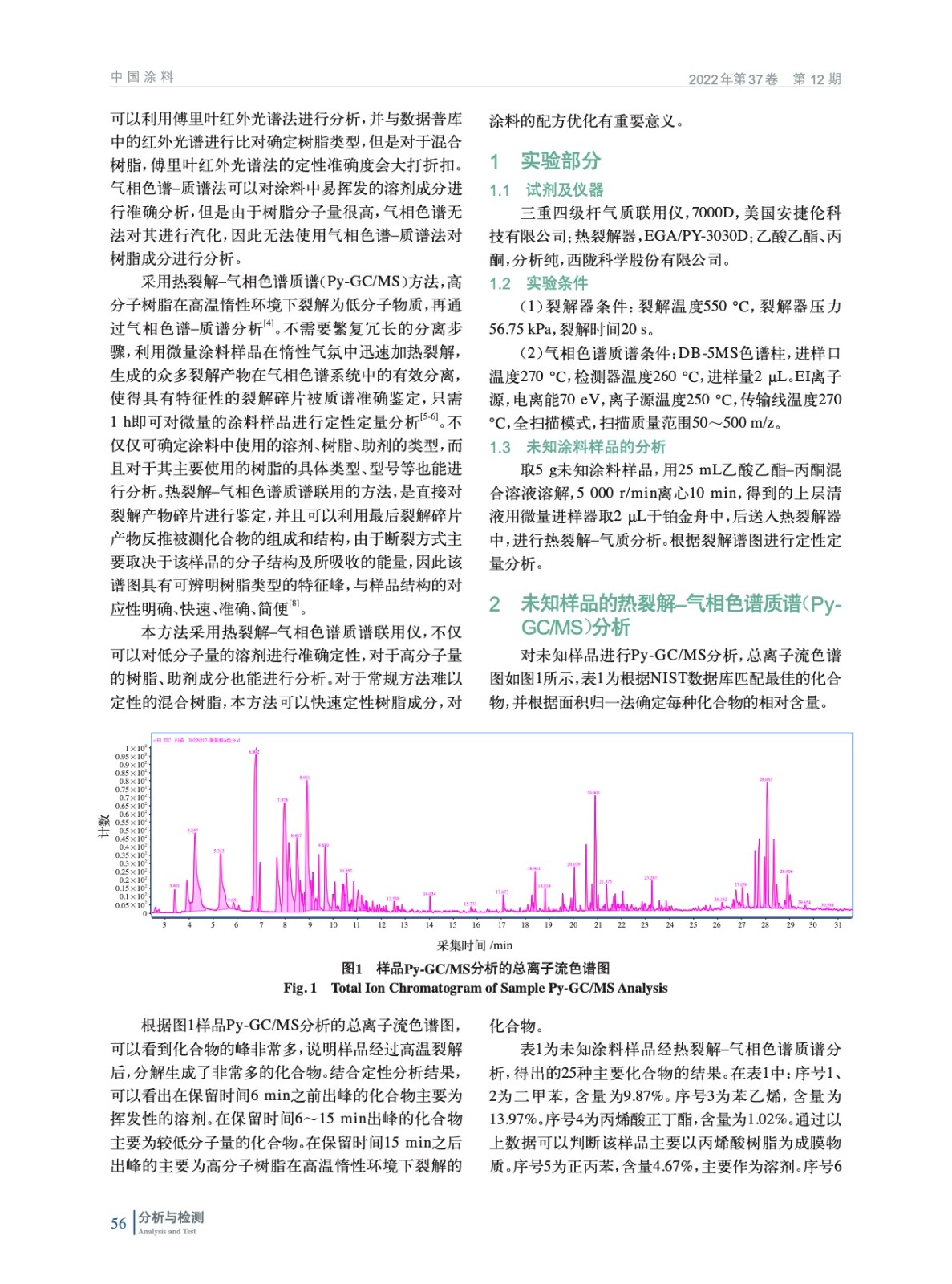 熱裂解–氣相色譜質(zhì)譜法(Py-GC/MS)分析涂料中的溶劑和樹脂