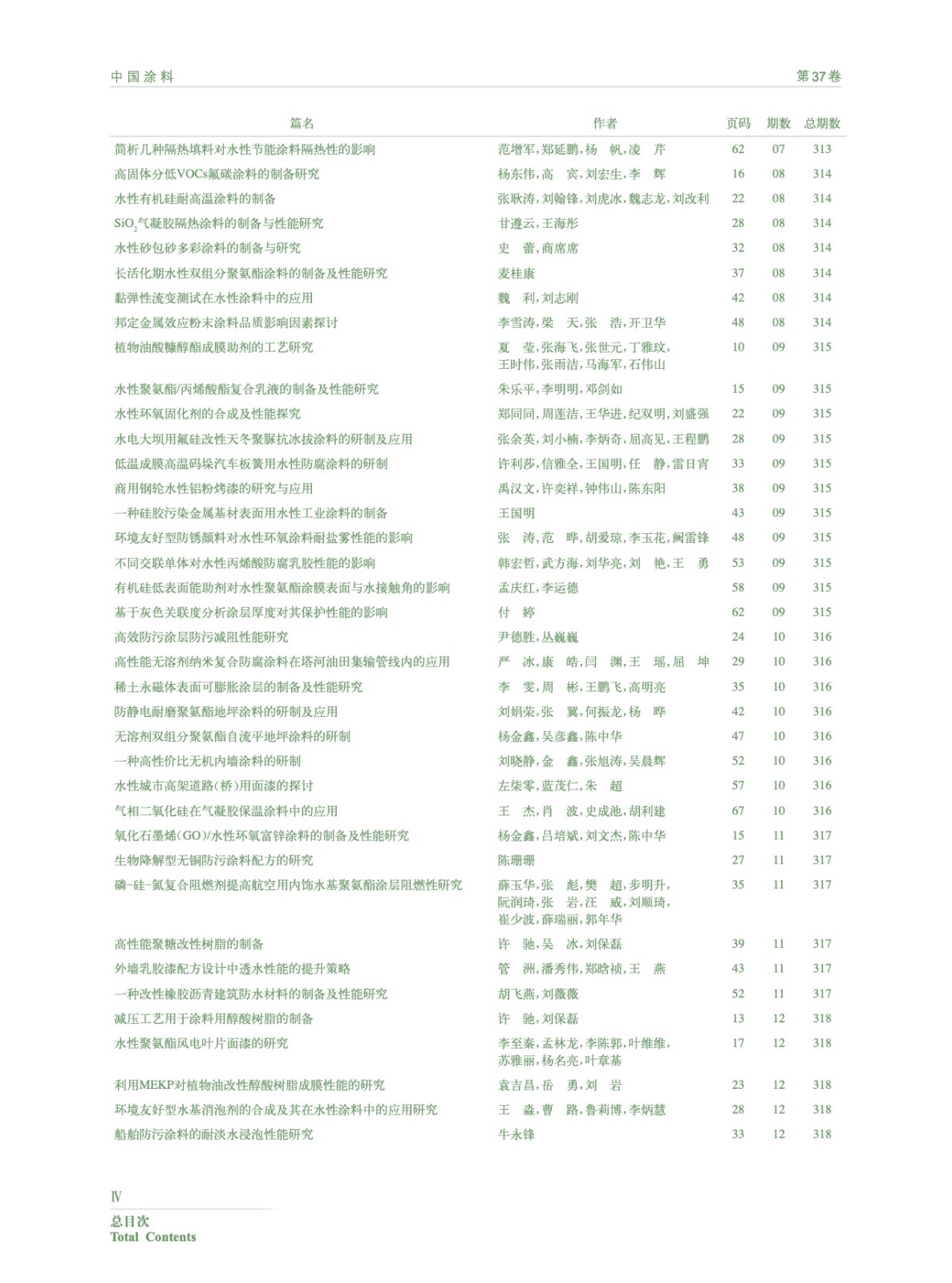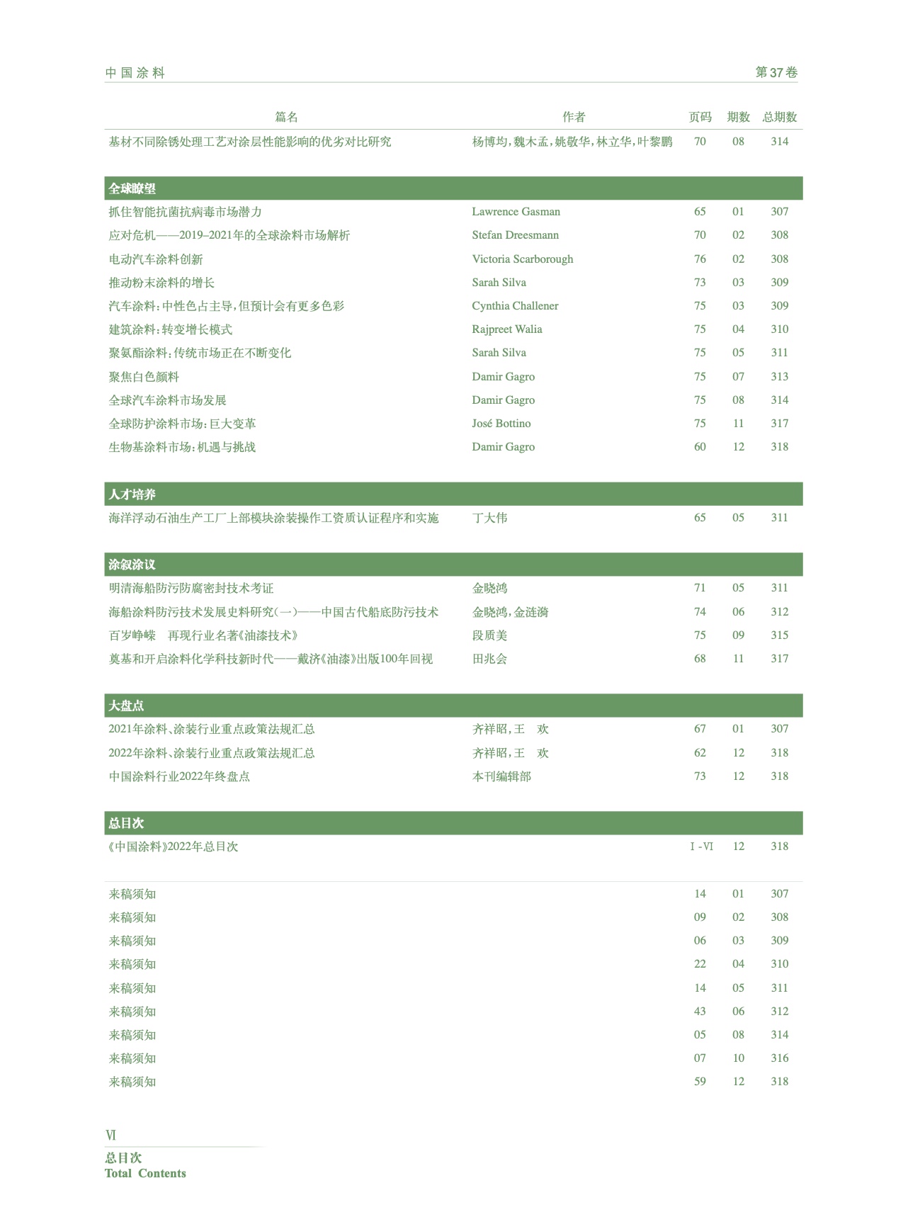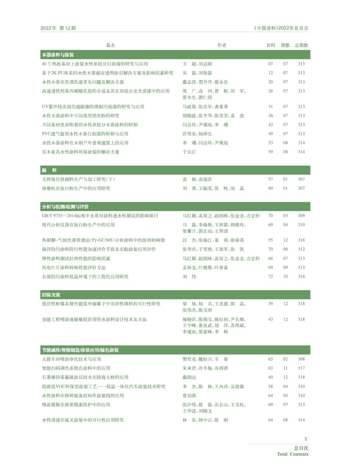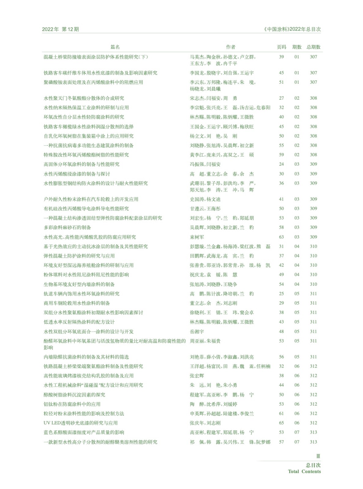 《中國(guó)涂料》2022年總目次