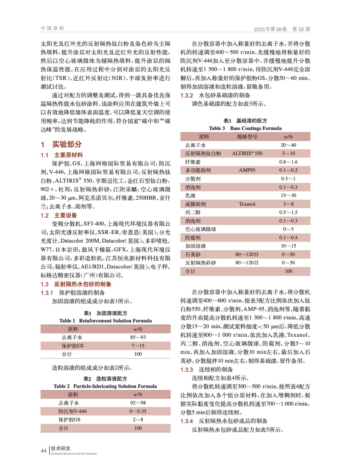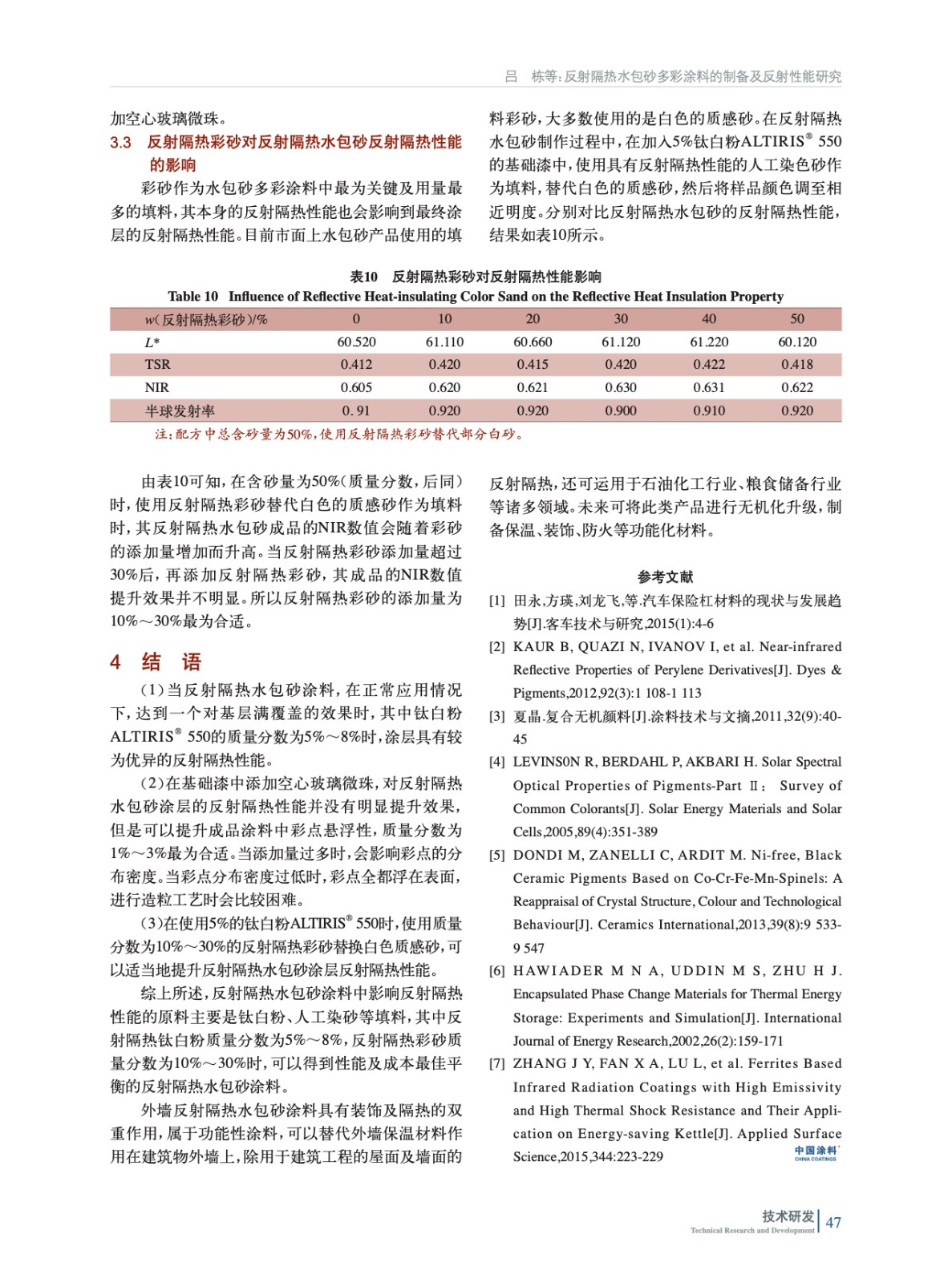 反射隔熱水包砂多彩涂料的制備及反射性能研究