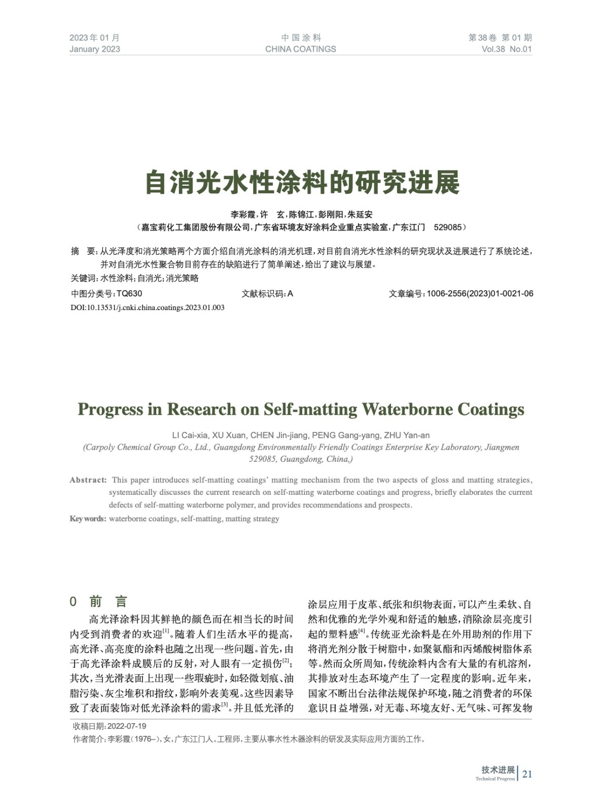 本文系作者@李彩霞,許 玄,陳錦江,彭剛陽,朱延安 授權中國涂料網發表,并經中國涂料網編輯,未經允許不得轉載,如需轉載請聯系chinacoatingnet@vip.163.com