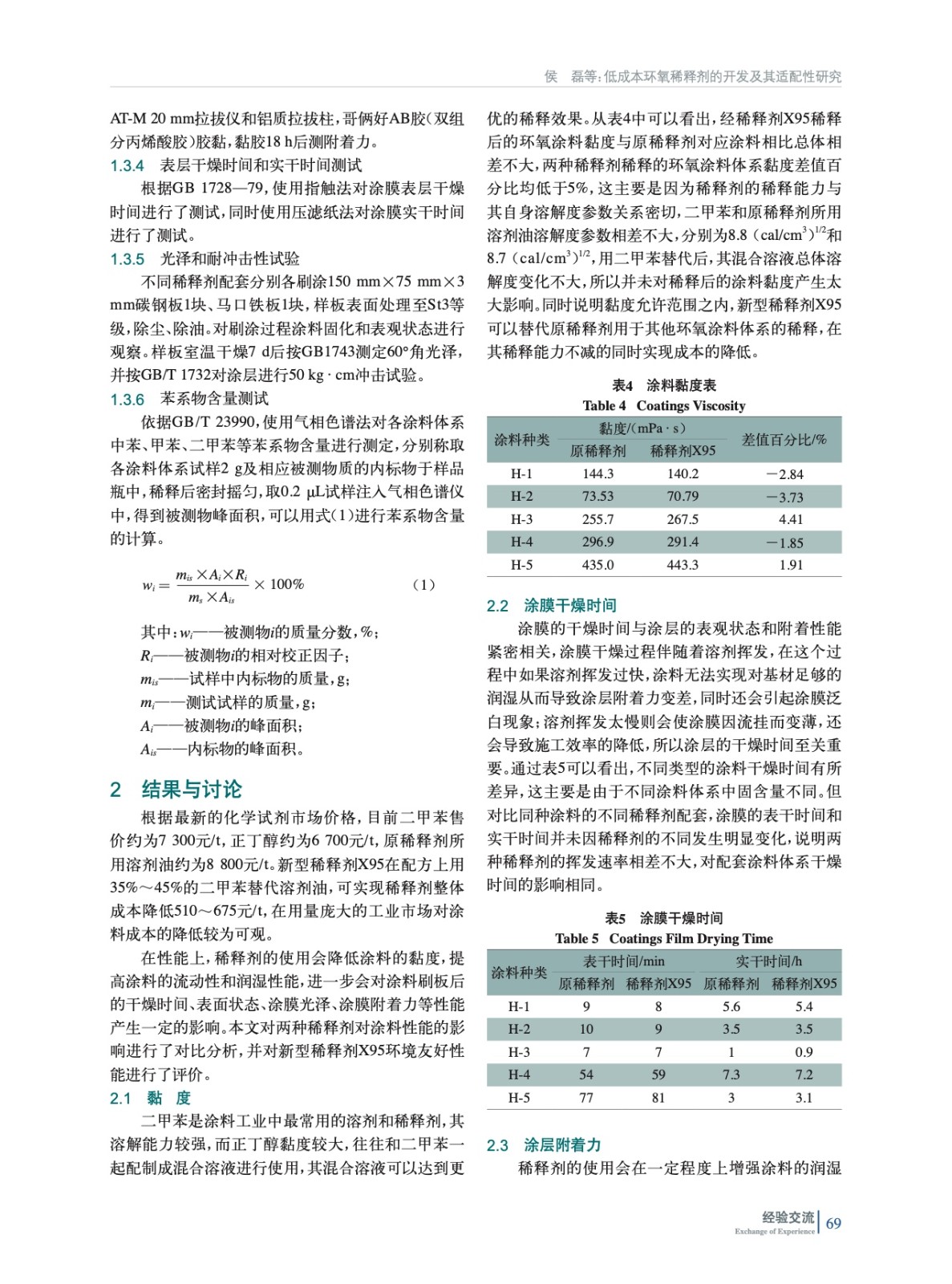摘要:為降低涂料用稀釋劑成本,滿足工業涂料發展的需要,實驗開發出一種低成本的環氧稀釋劑(X95),并對其稀釋后涂料的黏度及涂層的表觀狀態、附著力、耐沖擊等性能進行了研究。研究發現,相比于原稀釋劑,稀釋劑X95對應涂層附著力和60°光澤相對較高,涂層表面無明顯缺陷,50 kg·cm沖擊試驗后涂層無脫落,總體表現出比原稀釋劑更低的成本和更優的適配性。