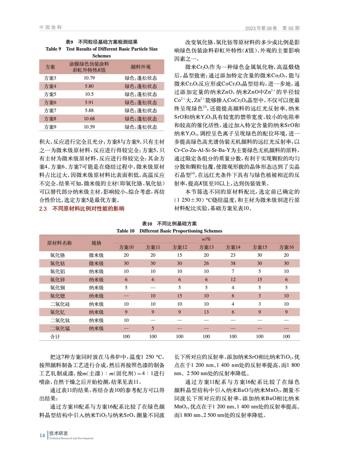 討論了燒結溫度、原材料粒徑、原材料配比3種影響因素對綠色高光譜偽裝無機顏料的影響,通過對顏料外觀、綠色偽裝涂料彩虹外特性(K值)、高光譜反射率進行評價,最終制備出滿足高光譜/超光譜探測需求的無機綠色顏料。在重要設施建筑、武器裝備和器材的偽裝保護上有廣闊的應用前景和意義。