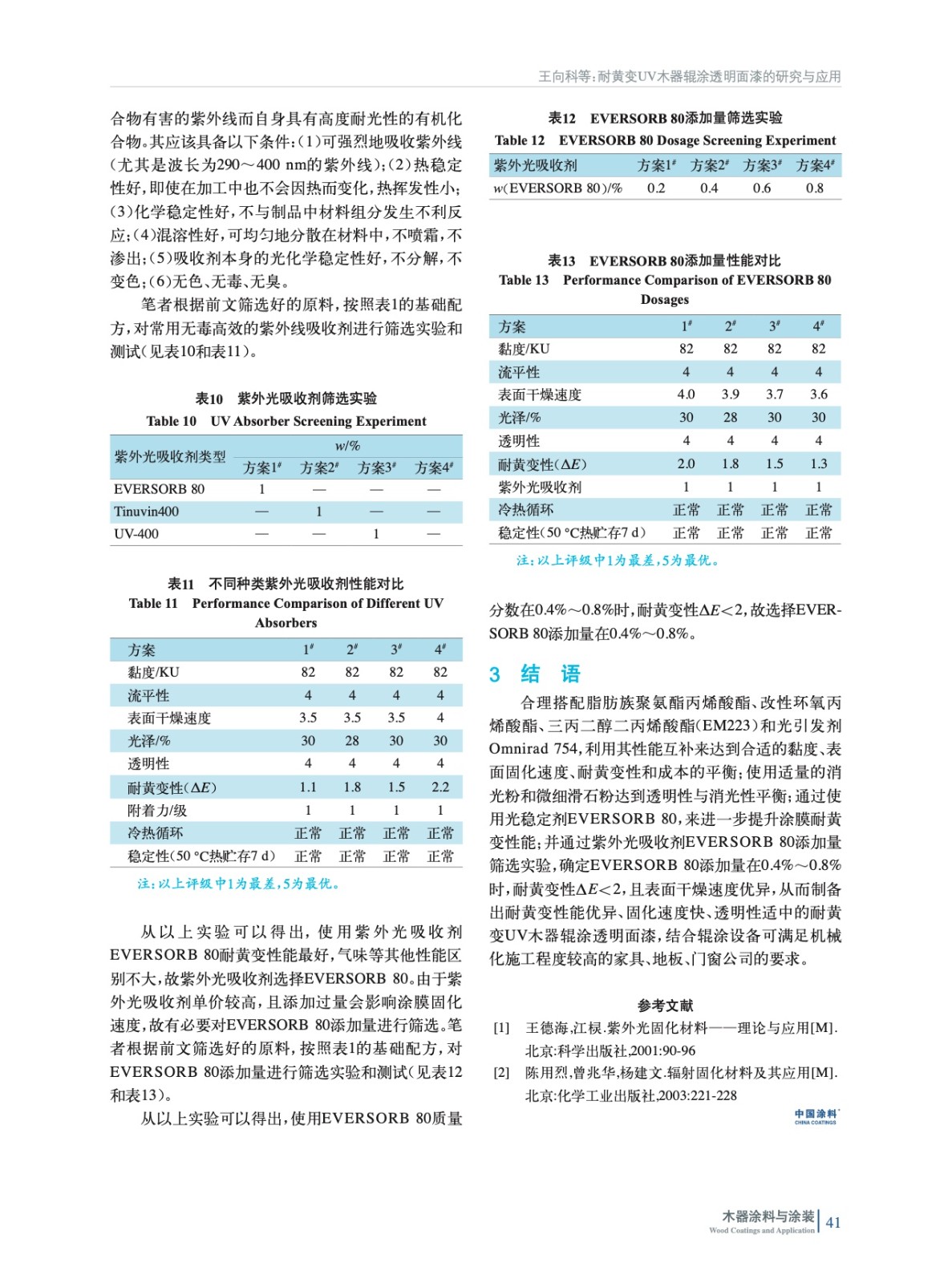 針對耐黃變UV木器輥涂透明面漆,從UV樹脂、單體、光引發劑和紫外線吸收劑選擇等方面進行探討,通過實驗論證以及輥涂設備應用測試,驗證了其在工業化大批量應用的可行性。