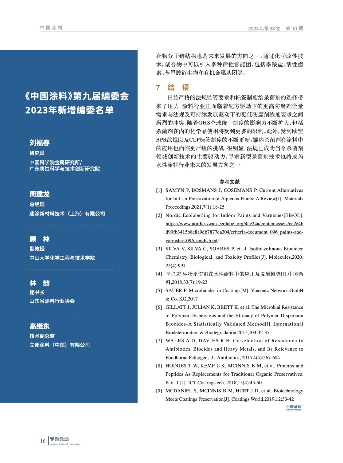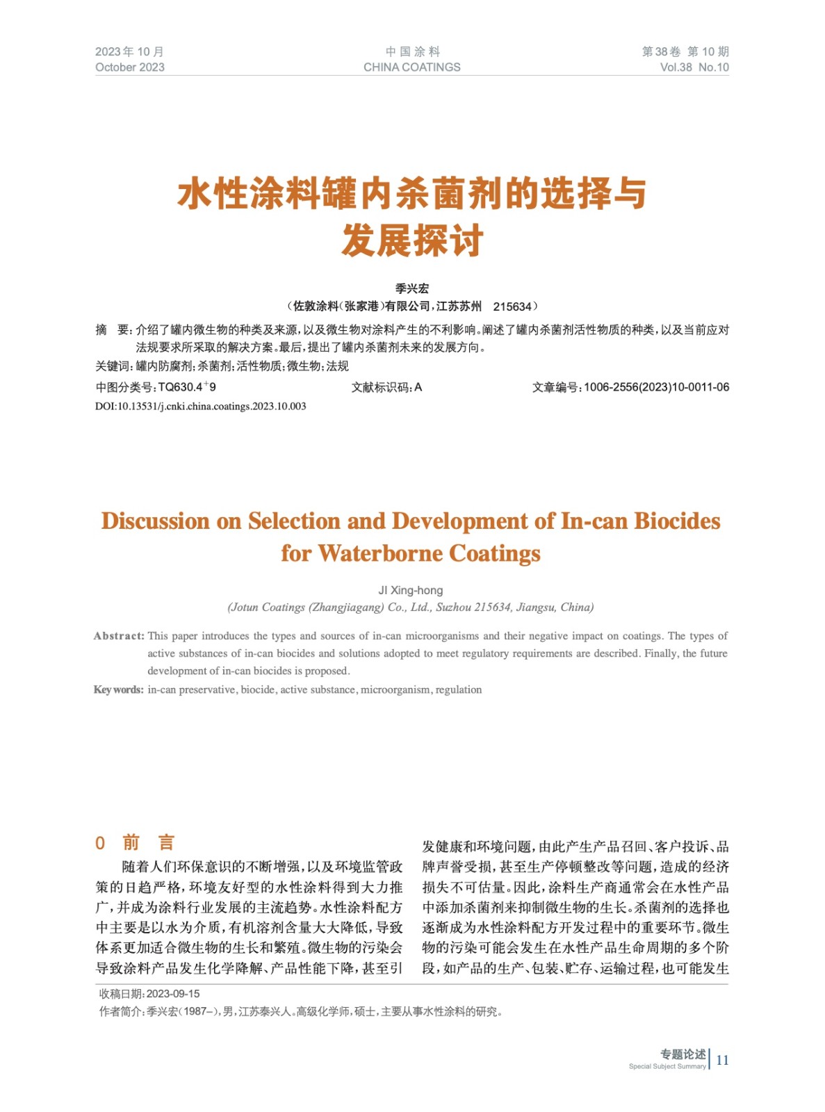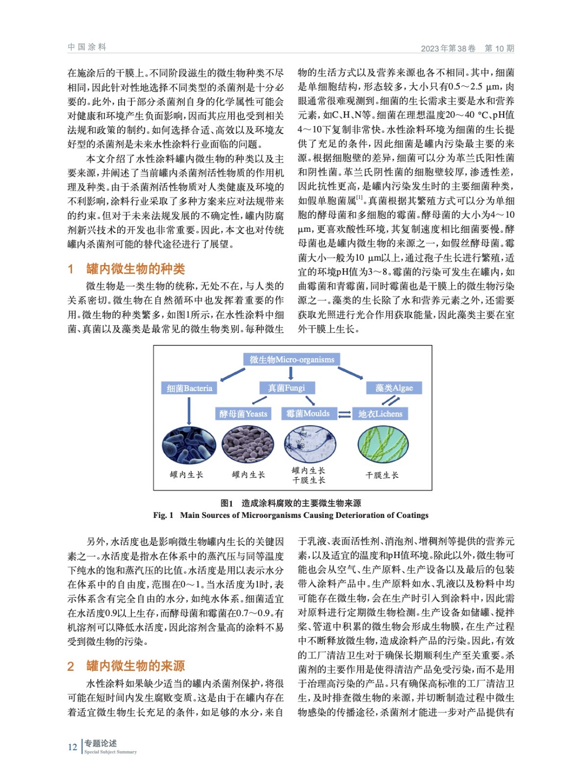 介紹了罐內微生物的種類及來源,以及微生物對涂料產生的不利影響。闡述了罐內殺菌劑活性物質的種類,以及當前應對法規要求所采取的解決方案。最后,提出了罐內殺菌劑未來的發展方向。