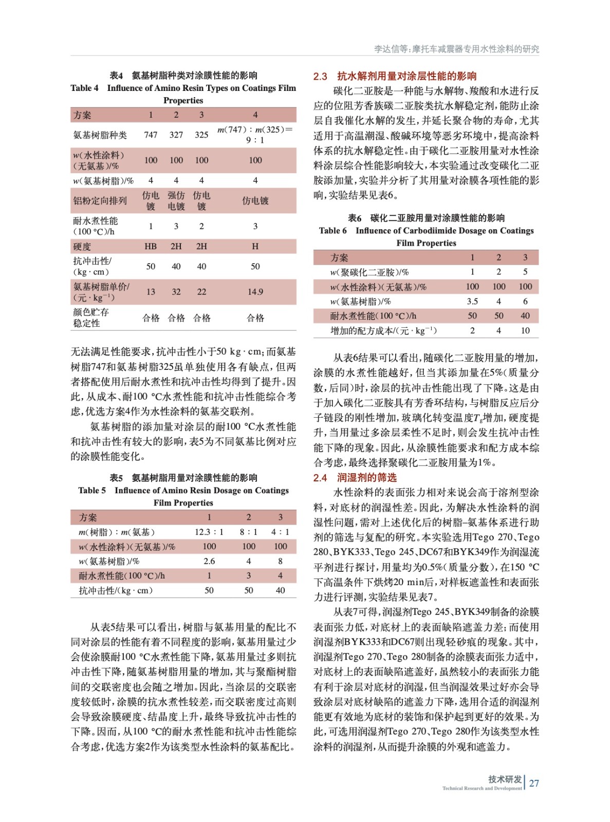 摩托車減震器專用水性涂料的研究