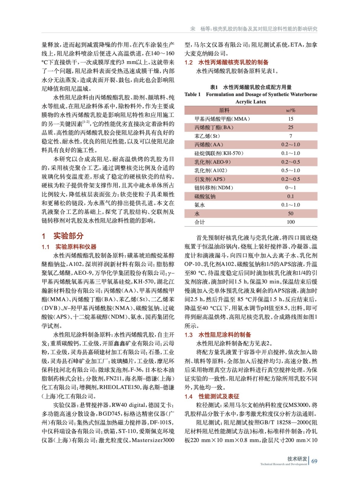 核殼乳膠的制備及其對阻尼涂料性能的影響研究