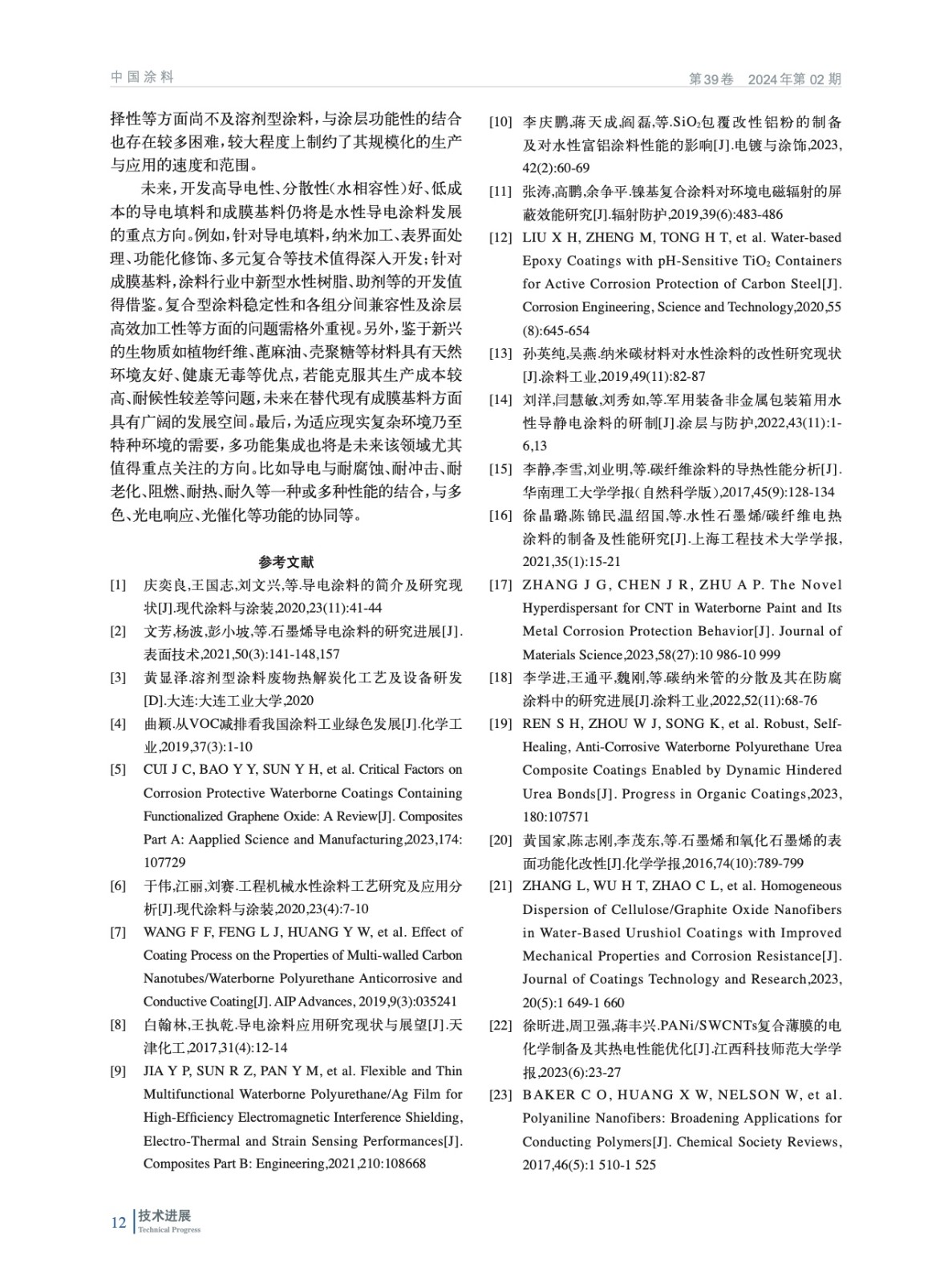 綜述了水性導電涂料填料(導電成分)和基料(成膜物)成分的類型和發展歷程、涂層導電機制及應用的最新研究進展,并對其未來發展方向進行了展望。