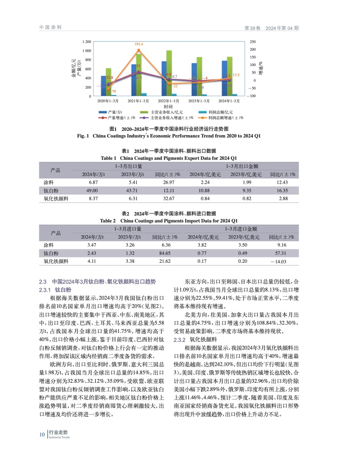 2024年一季度中國涂料、顏料行業(yè)經(jīng)濟(jì)運(yùn)行簡(jiǎn)析