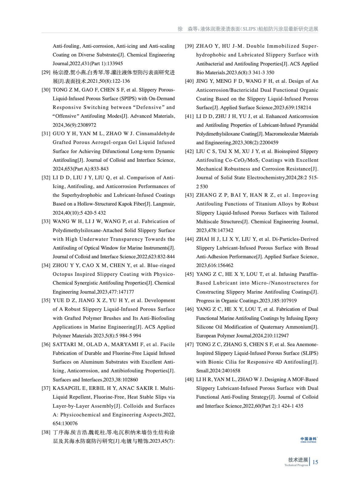 綜述了近3年來關于液體潤滑浸漬表面(SLIPS)船舶防污涂層的研究進展,特別是潤滑液的選擇與涂層的結構設計,以及這些因素如何影響涂層的整體性能,以期為未來的研究提供最新思路及研究方法。