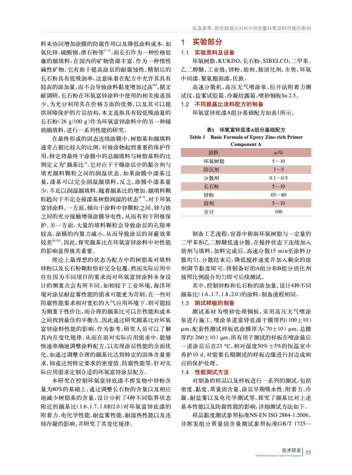 探究顏基比對80%鋅含量環氧涂料性能的影響