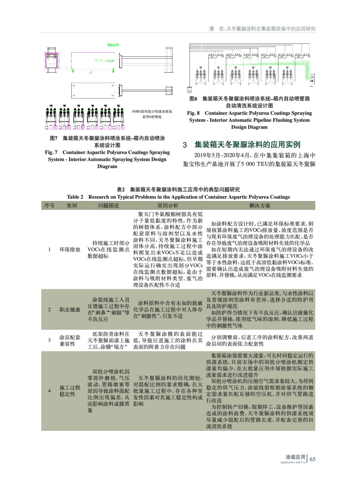 摘要:通過(guò)對(duì)天冬聚脲涂料在中集集裝箱的實(shí)際應(yīng)用情況進(jìn)行研究,從涂層配套系統(tǒng)的設(shè)計(jì)、涂裝工藝、涂裝設(shè)備、涂裝線技改、涂層質(zhì)量缺陷的控制等方面做深入分析,為集裝箱涂裝工藝的綠色升級(jí)提供了一條可供借鑒的解決方案和重要思路。