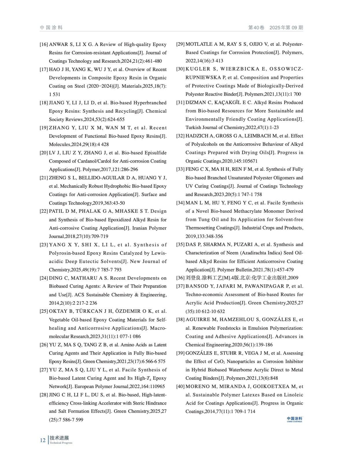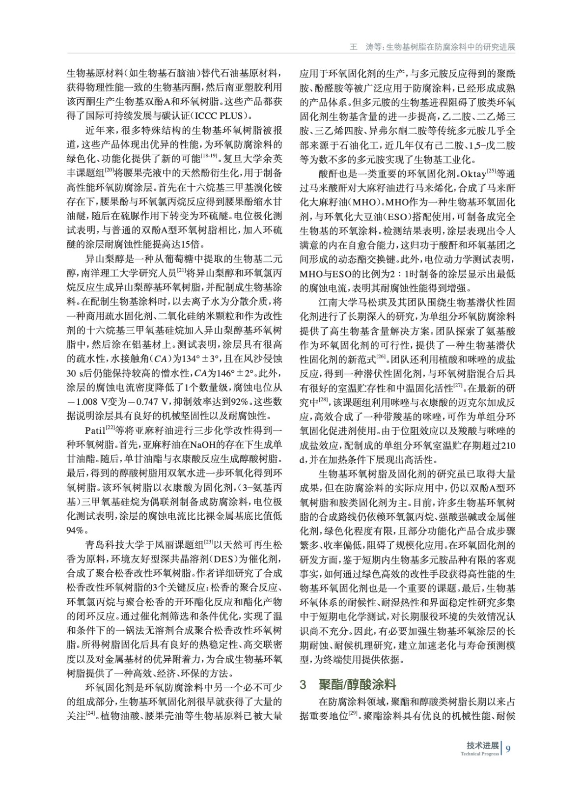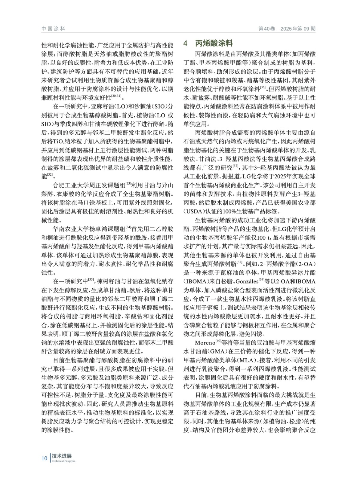 介紹了生物基樹脂在防腐涂料中的研究進展,列舉了代表性的學術研究成果,對其中一些產品的工業化進程作了簡單介紹,并展望防腐涂料用生物基樹脂的發展前景。