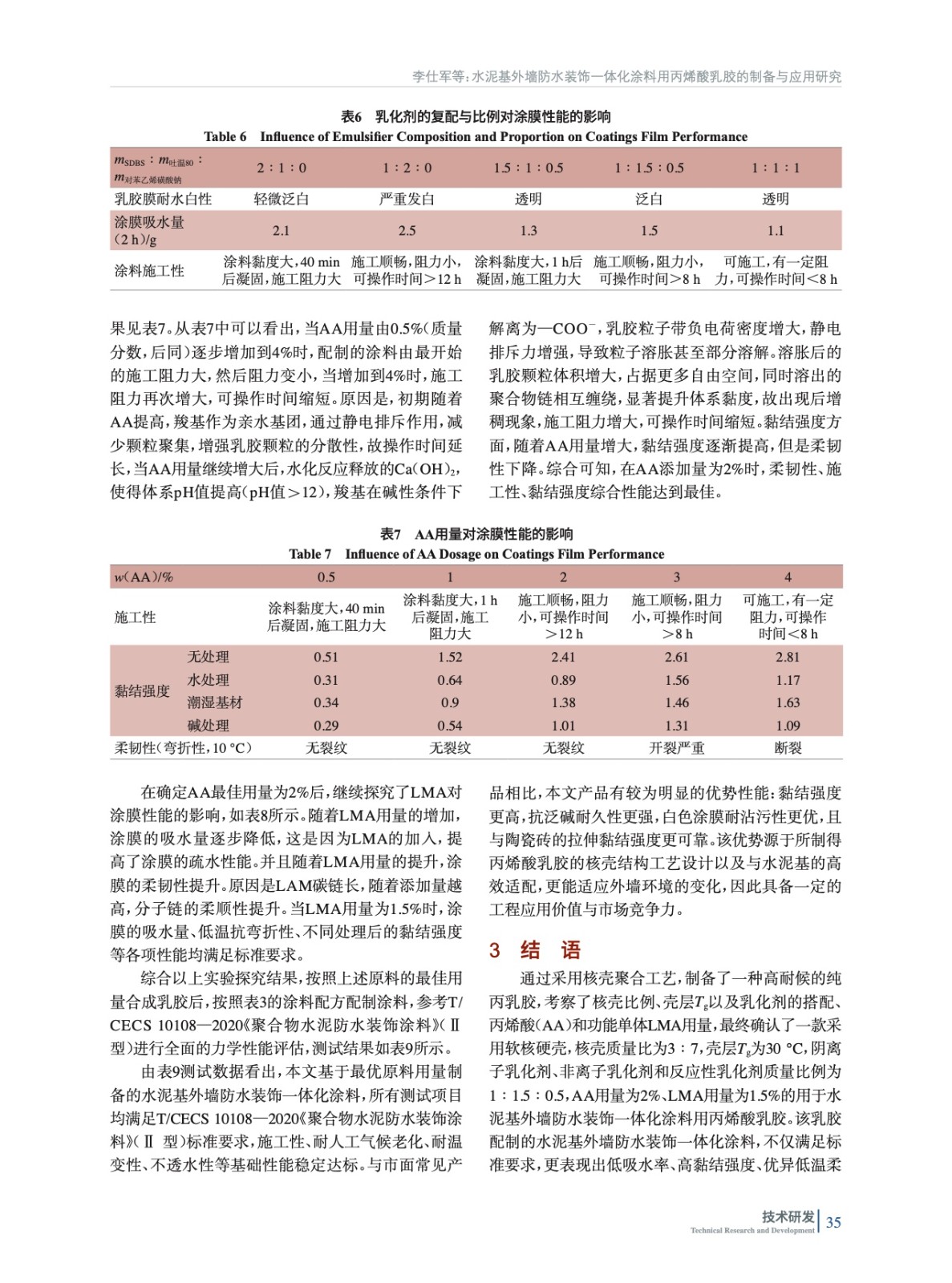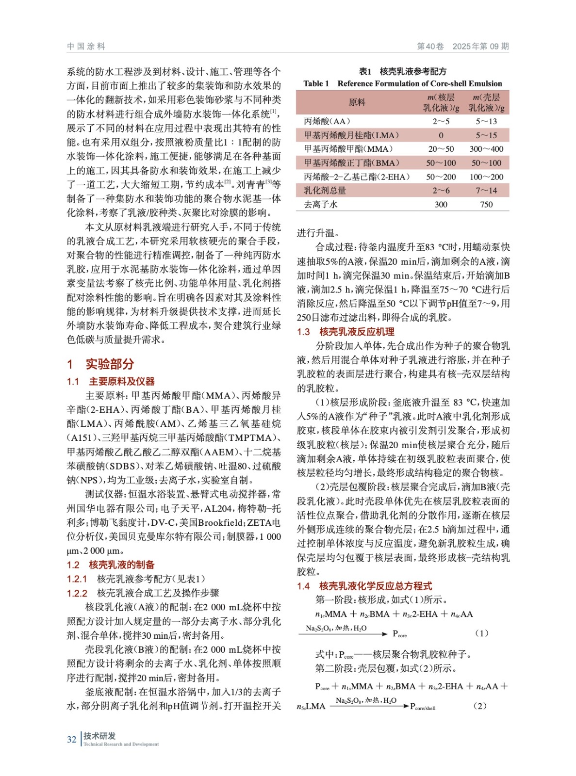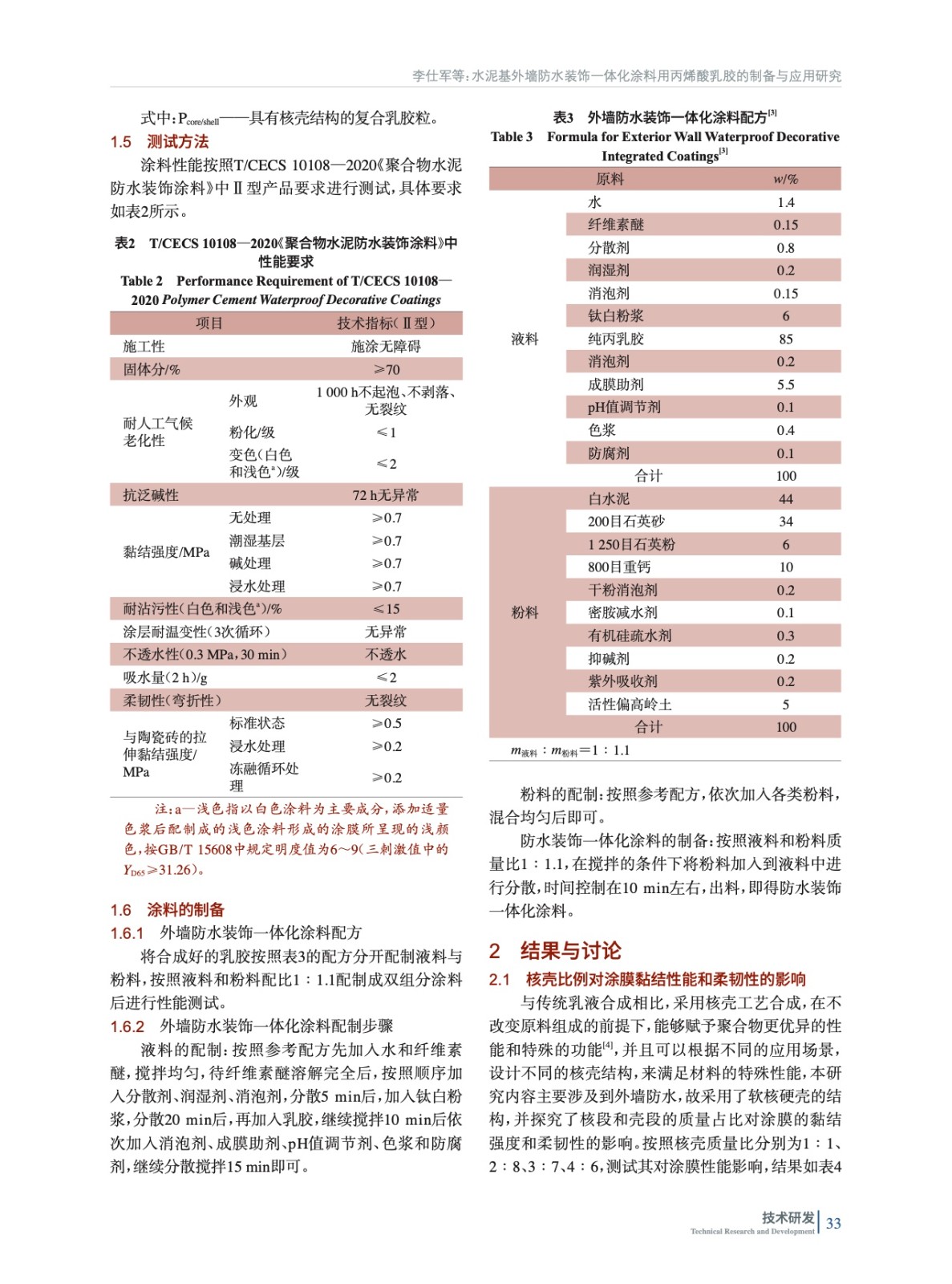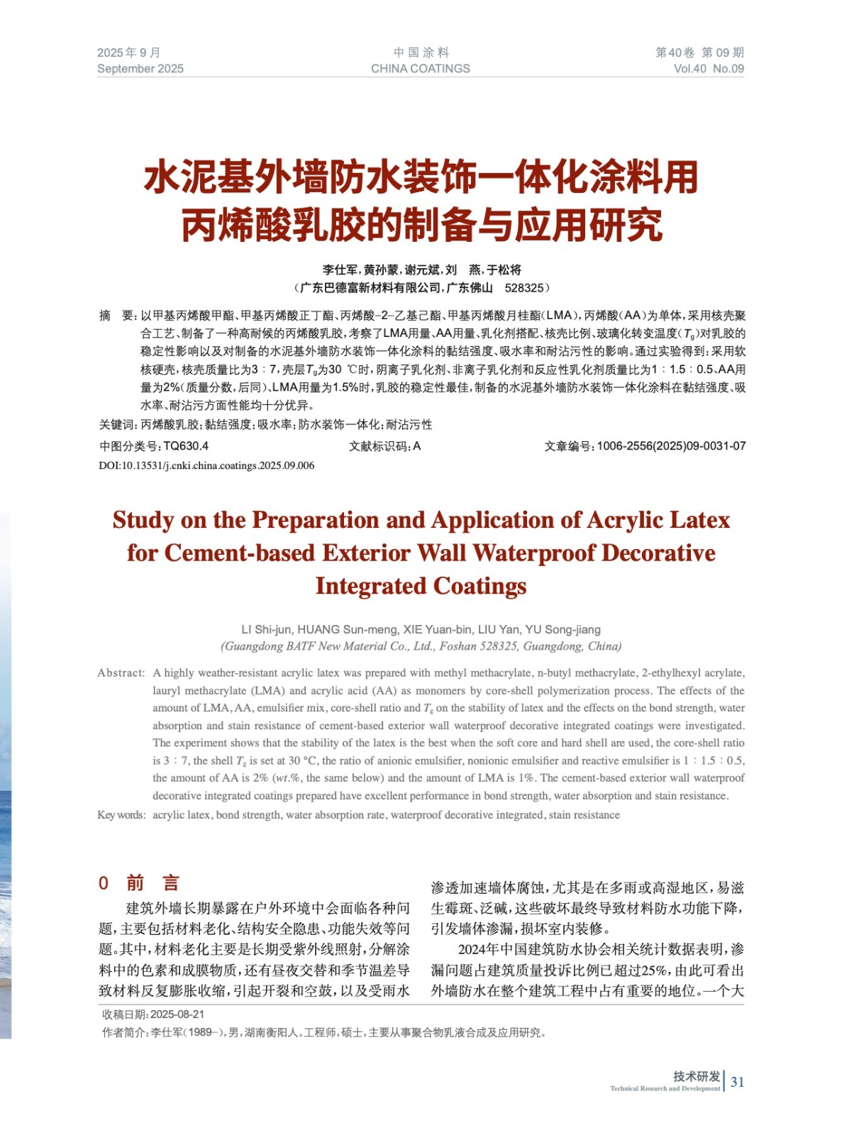 水泥基外墻防水裝飾一體化涂料用丙烯酸乳膠的制備與應用研究
