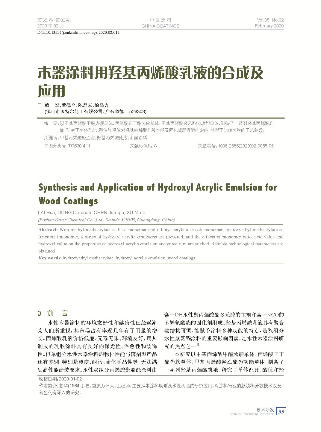 本文系作者@賴 華,董德全,陳君求,徐馬力 授權中國涂料網發表,并經中國涂料網編輯,未經允許不得轉載,如需轉載請聯系chinacoatingnet@vip.163.com