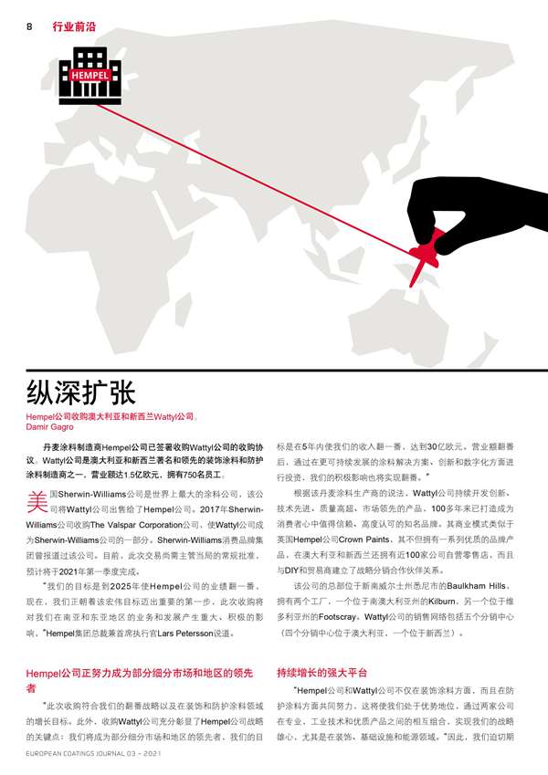 Hempel公司收購(gòu)澳大利亞和新西蘭Wattyl公司