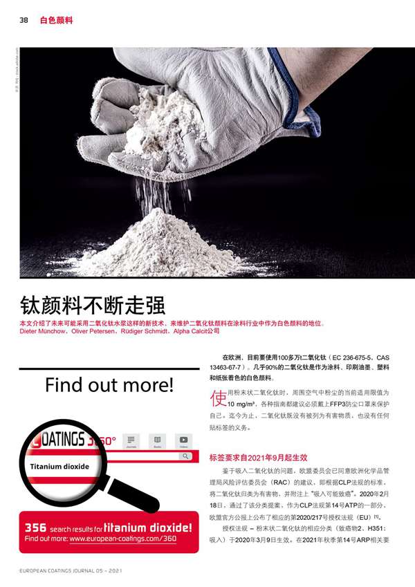 本文介紹了未來可能采用二氧化鈦水漿這樣的新技術,來維護二氧化鈦顏料在涂料行業(yè)中作為白色顏料的地位。