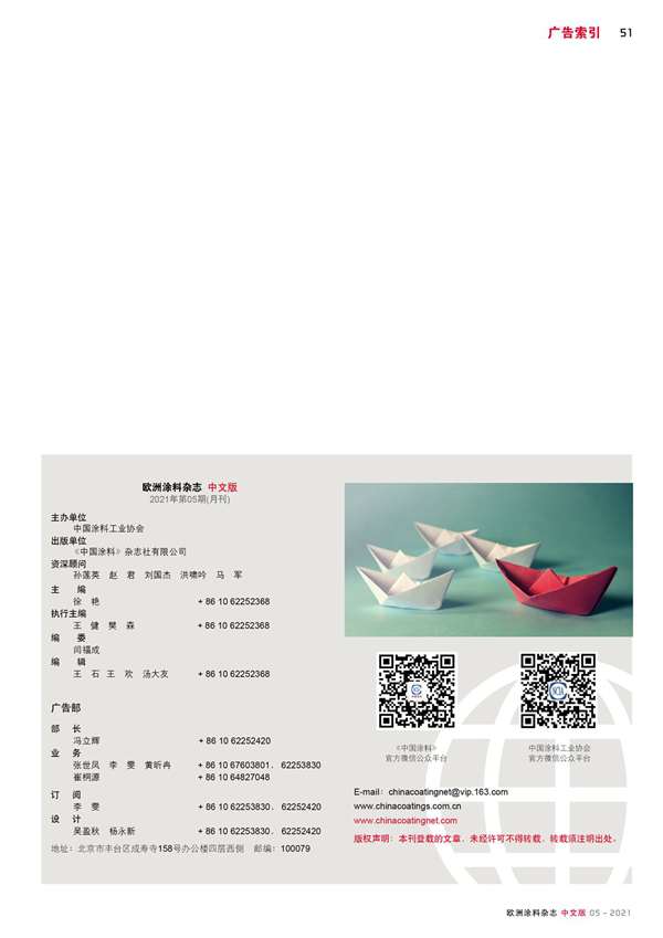 主辦:《中國涂料》雜志社有限公司 電話:010-62252368